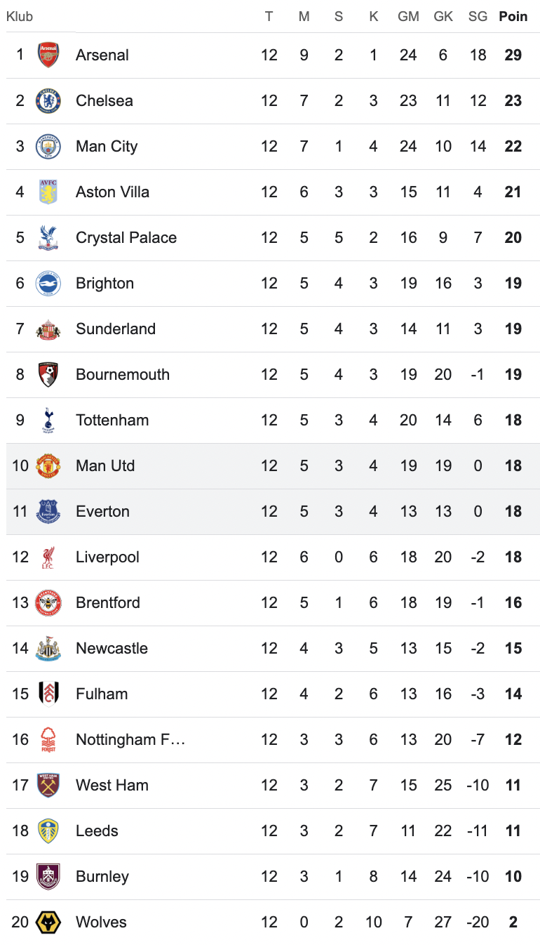 Jumlah poin sama dengan Everton, yang kini berada di tangga 11.