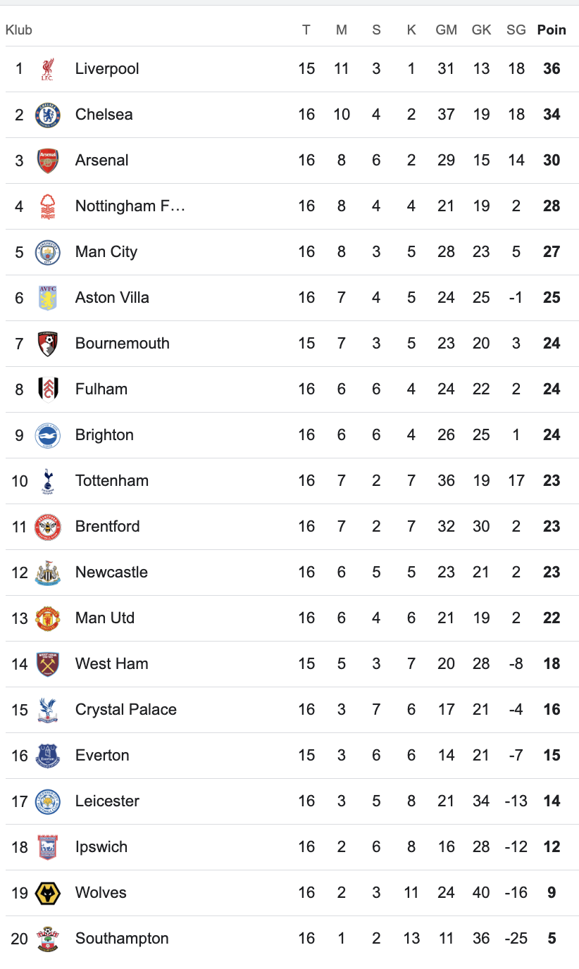 Hasil Laga ke-16 Liga Inggris hingga Senin (16/12) pagi: