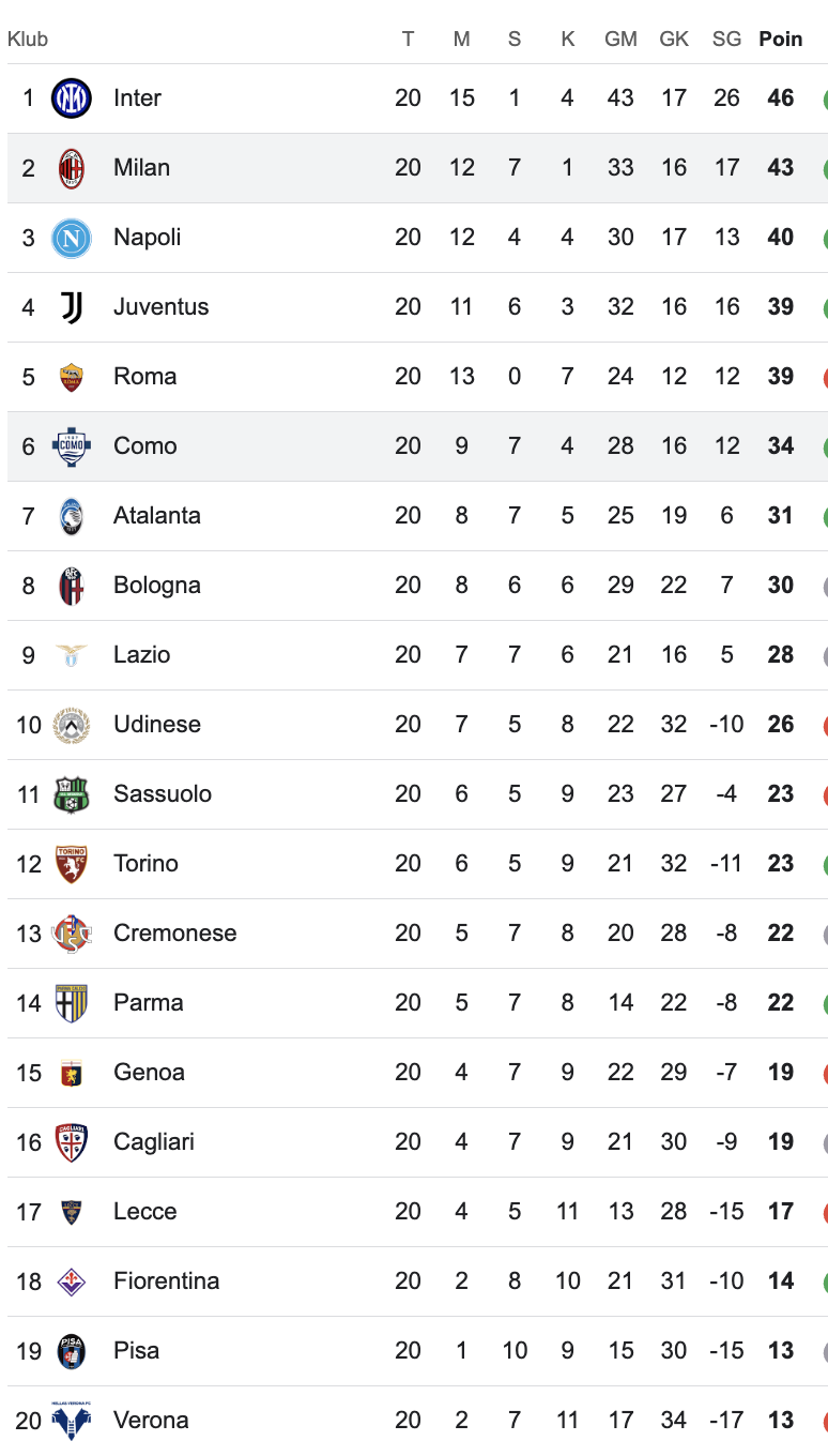 Klasemen Liga Italia Serie A