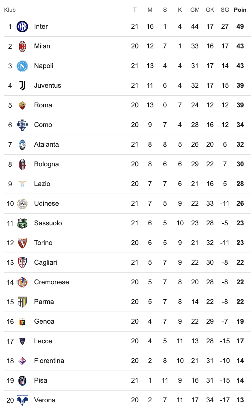 Klasemen Liga Italia Serie A