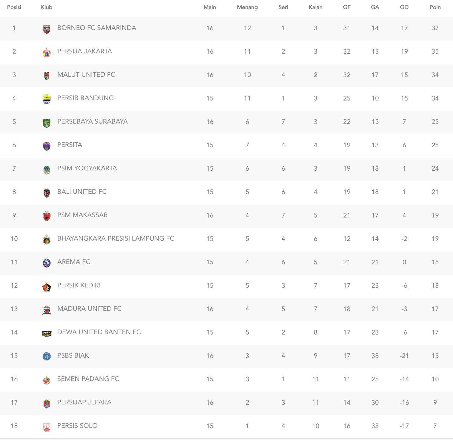 Persib Bandung baru akan memainkan laga pekan 16 melawan tuan rumah Persik Kediri, Senin (5/1). Jika menang, Persib akan kembali ke puncak klasemen dengan 37 poin sekaligus membuat Borneo FC, Persija, dan Malut United turun tangga.