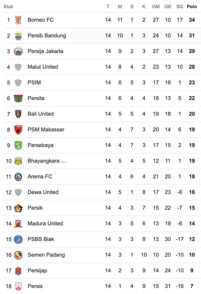 MerahPutih.com - Persib Bandung mengambil alih posisi kedua dari Persija Jakarta setelah laga pekan ke-15 Super League 2025/2026. Persib menang 2-0 atas Bhayangkara FC, sementara di laga lain Persija takluk 0-1 dari Semen Padang.