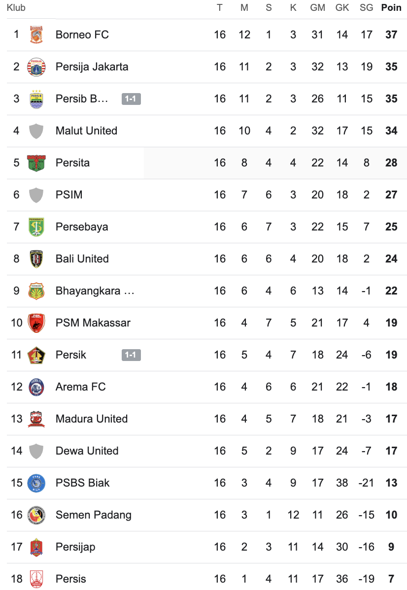 Persib pun hanya mendapat satu angka dan kini mengoleksi 35 poin di tempat ketiga. Persib berada di bawah Borneo FC Samarinda dan Persija Jakarta. Sedangkan Persik di posisi 11 dengan 19 angka.