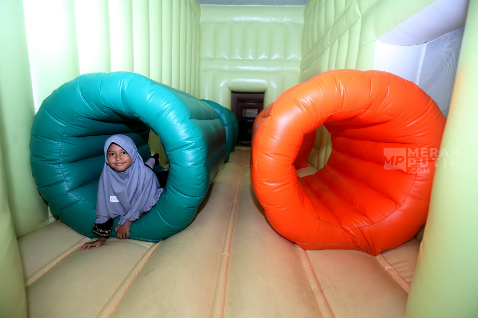 Merahputih.com - Anak-anak dari Panti Asuhan PYI Yatim dan Zakat Graha Raya berain wahana Paw Patrol Adventure Bay Bounce, Cartensz Mall, Gading Serpong, Tangerang, Banten, Kamis (10/4/2025).