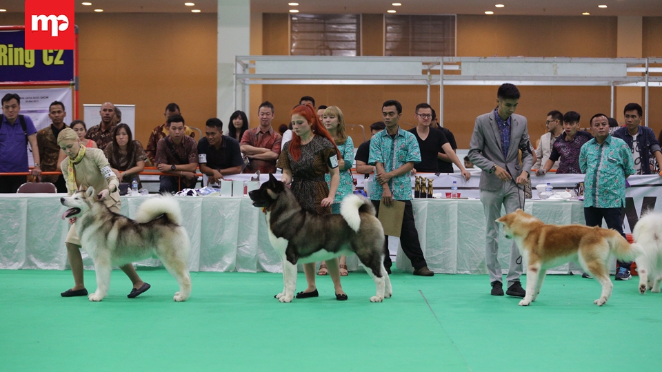 Bersama sang (dari kiri ke kanan) anjing Alaskan Malamute, American Akita, dan Japanese Akita mengikuti kontes untuk memperebutkan juara group pada kontes anjing internasional PERKIN Jaya di Ecopark Ancol, Jakarta. Pada ajang bergengsi tersebut juga akan memperebutkan best breeders (pembiak terbaik) dan Top Dogs 2016 sebanyak 20 ekor anjing.