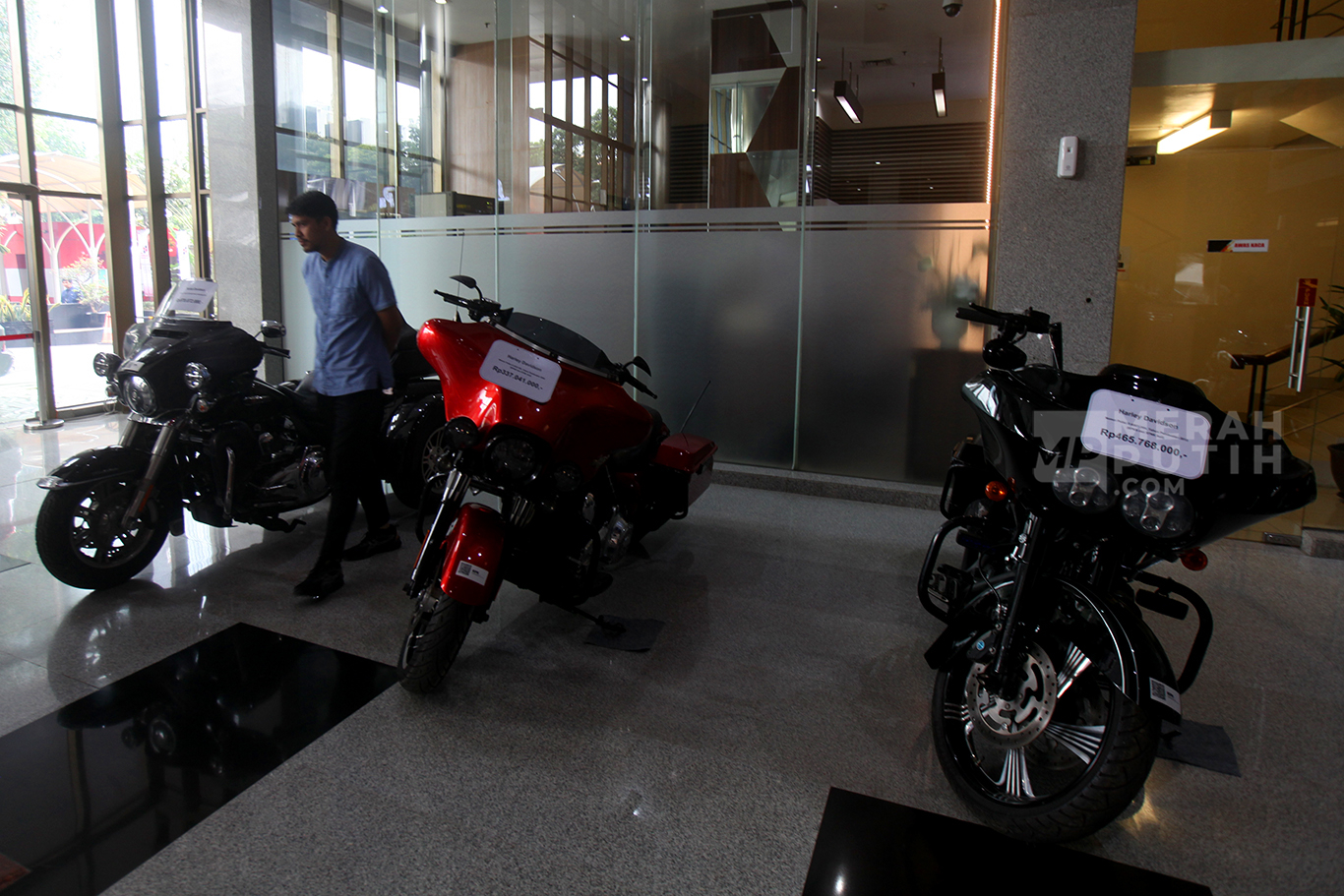 7. Satu unit sepeda motor Harley Davidson warna hitam yang akan dilelang dengan dengan harga wajar Rp465.768.000 dan uang jaminan Rp200.000.000. (MP/Didik Setiawan).