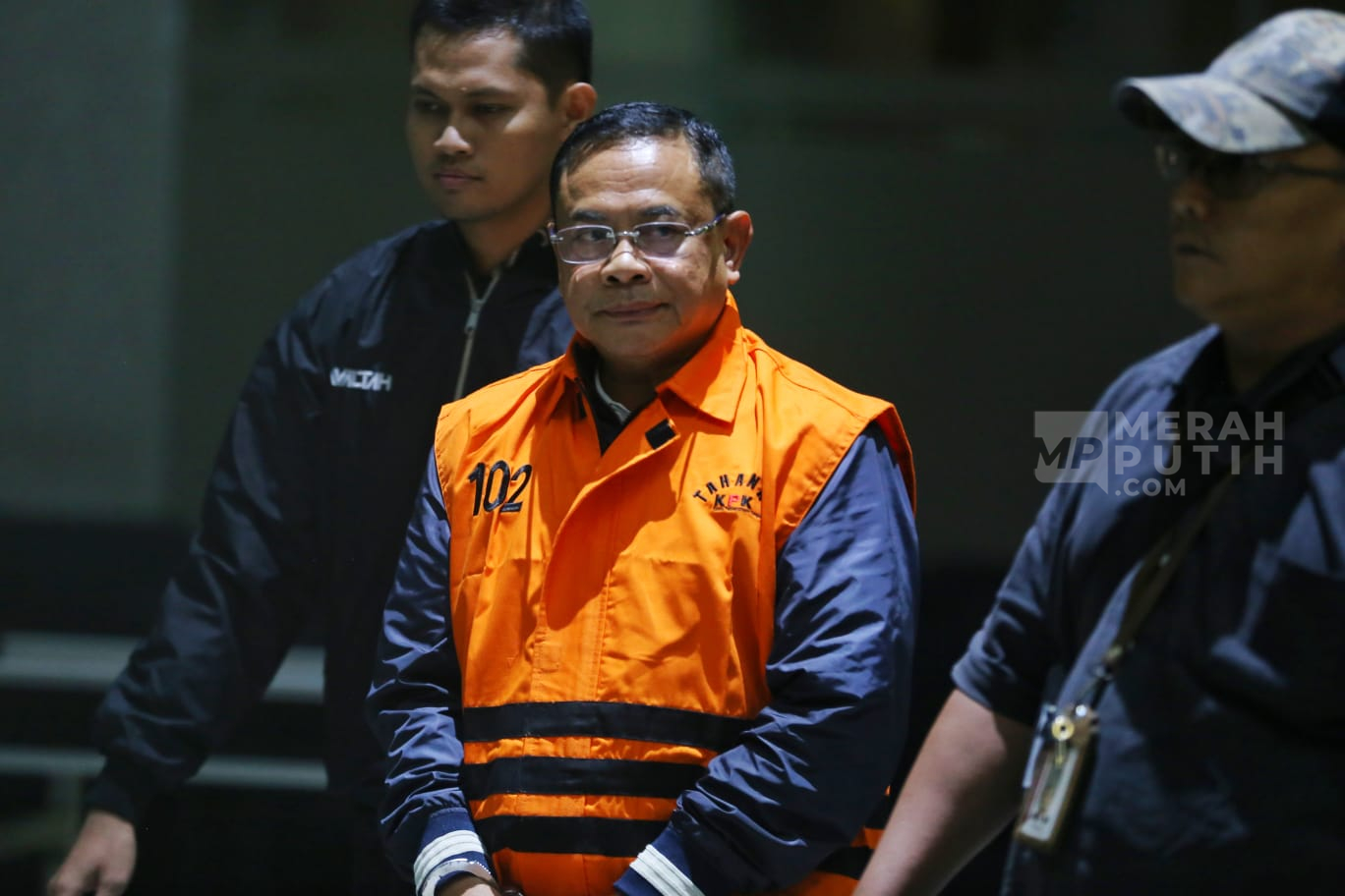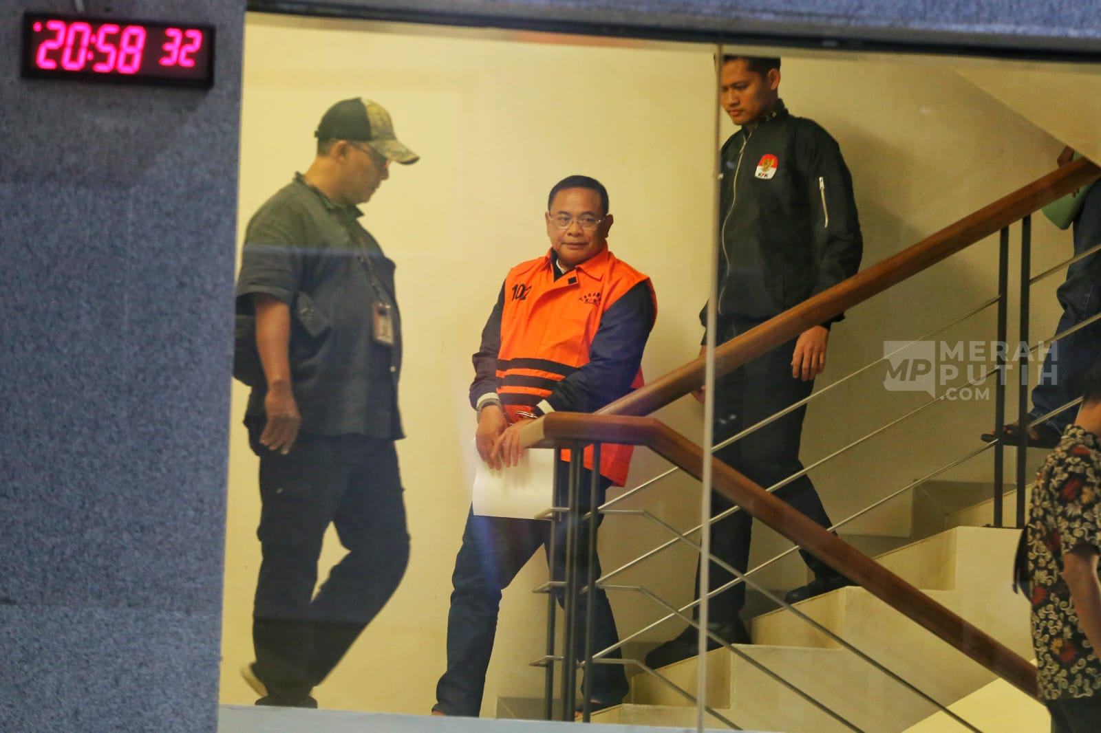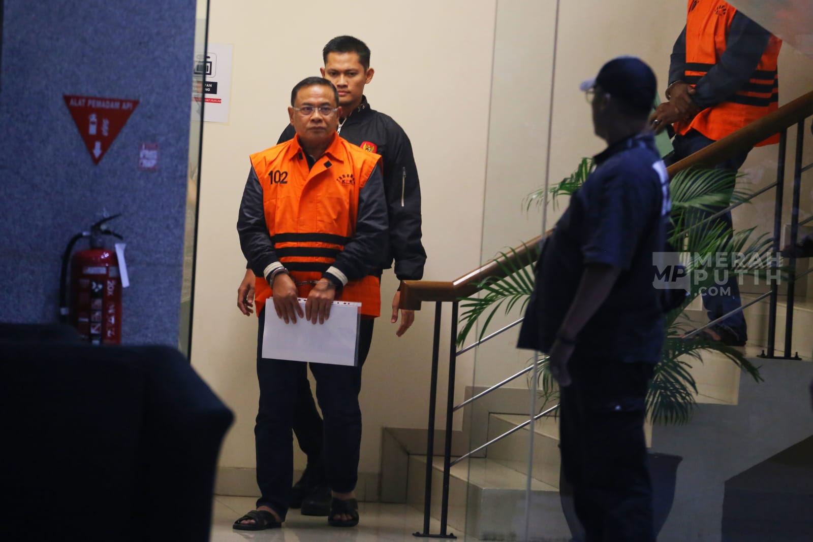 Merahputih.com - Tersangka Kasus Dugaan Suap Jual Beli Jabatan dan Bupati Pati, Sudewo berjalan dengan kawalan petugas di Gedung KPK Merah Putih, Jakarta, Selasa (20/1/2026). KPK secara resmi menetapkan Bupati Pati, Sudewo sebagai tersangka kasus dugaan suap jual beli jabatan dengan barang bukti Rp2,6 miliar. (Foto: MP/Didik Setiawan).