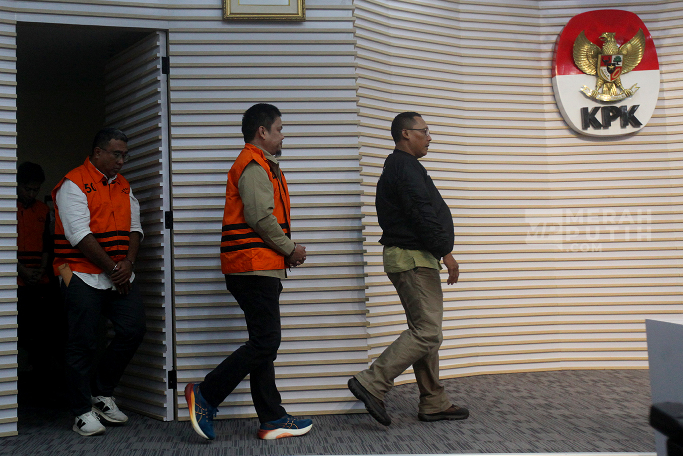 Selain Abdul Azis, KPK juga menetapkan empat tersangka lainnya, yaitu Andi Lukman Hakim selaku PIC Kemenkes untuk Pembangunan RSUD, Ageng Dermanto selaku PKK proyek Pembangunan RSUD di Kolaka Timur, Deddy Karnady selaku pihak swasta PT PCP, dan Arif Rahman selaku pihak swasta PT PCP. (MP/Didik Setiawan).