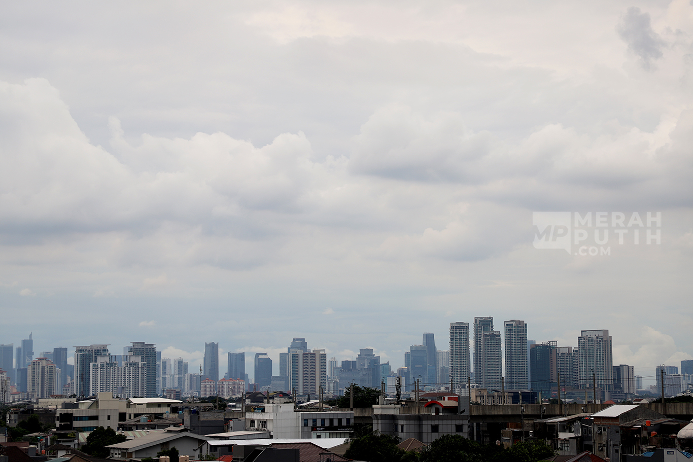 Merahputih.com - Suasana gedung perkantoran dengan kondisi udara dan langit Jakarta cerah, Selasa (15/4/2025).