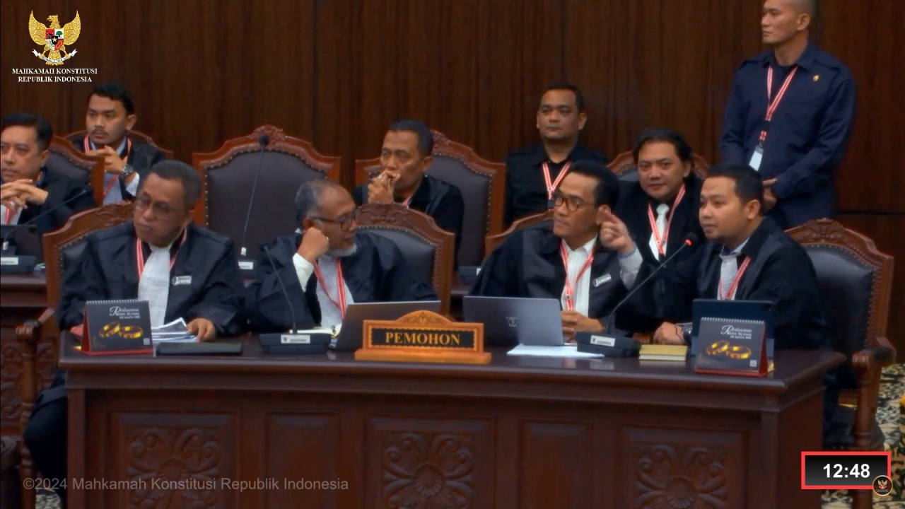 "Saksi kami kemarin atas nama Fauzi, yang melaporkan ke Bawaslu mengenai pertemuan Cawapres 02 dengan Apdesi (Asosiasi Pemerintah Desa Seluruh Indonesia) di GBK, itu ditolak laporan kami dengan alasan kurang syarat materil," kata anggota tim kuasa hukum Cawapres 01 kepada majelis hakim.