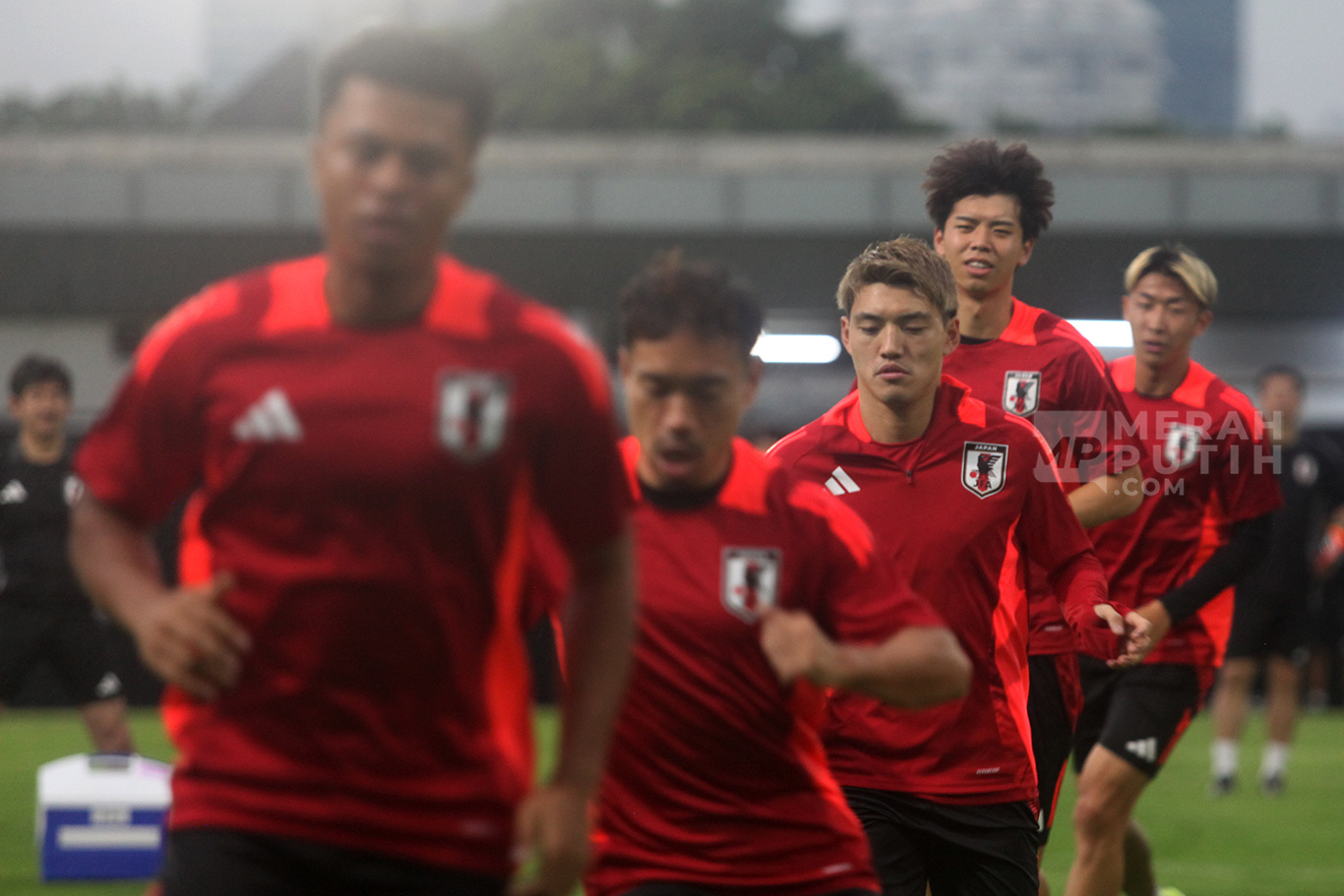 Latihan Timnas Jepang tersebut merupakan persiapan menjelang pertandingan melawan timnas Indonesia dalam lanjutan putaran ketiga kualifikasi Piala Dunia 2026 zona Asia Grup C di Stadion Utama Gelora Bung Karno (SUGBK), Jakarta, pada Jumat (15/11/2024) mendatang. (MP/Didik Setiawan).