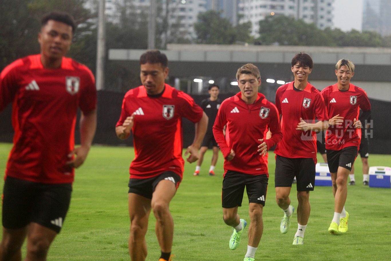 Latihan Punggawa Timnas Jepang di Lapangan A GBK Jelang Laga Kontra Indonesia