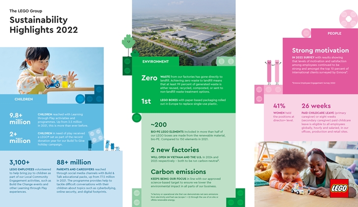 "Tahun 2022 adalah tahun bersejarah bagi The LEGO Group, bersamaan dengan perayaan ulang tahun ke-90. Hasil kuat ini menunjukkan bahwa LEGO System in Play lebih relevan dan menarik dari sebelumnya," kata CEO Lego Group Niels B. Christiansen.