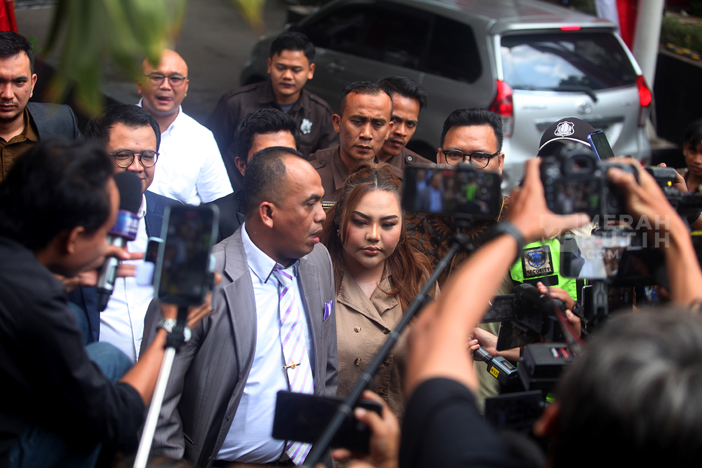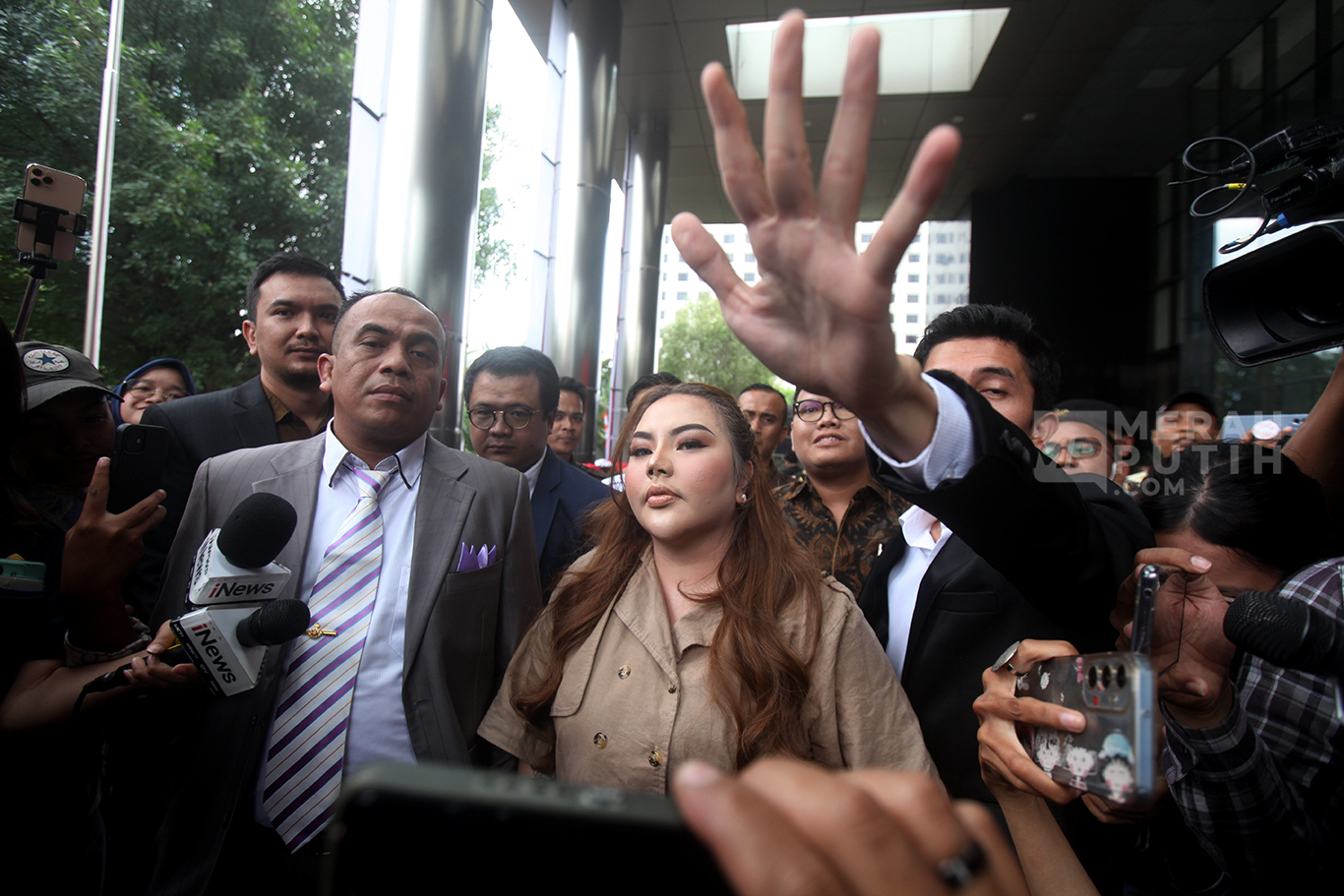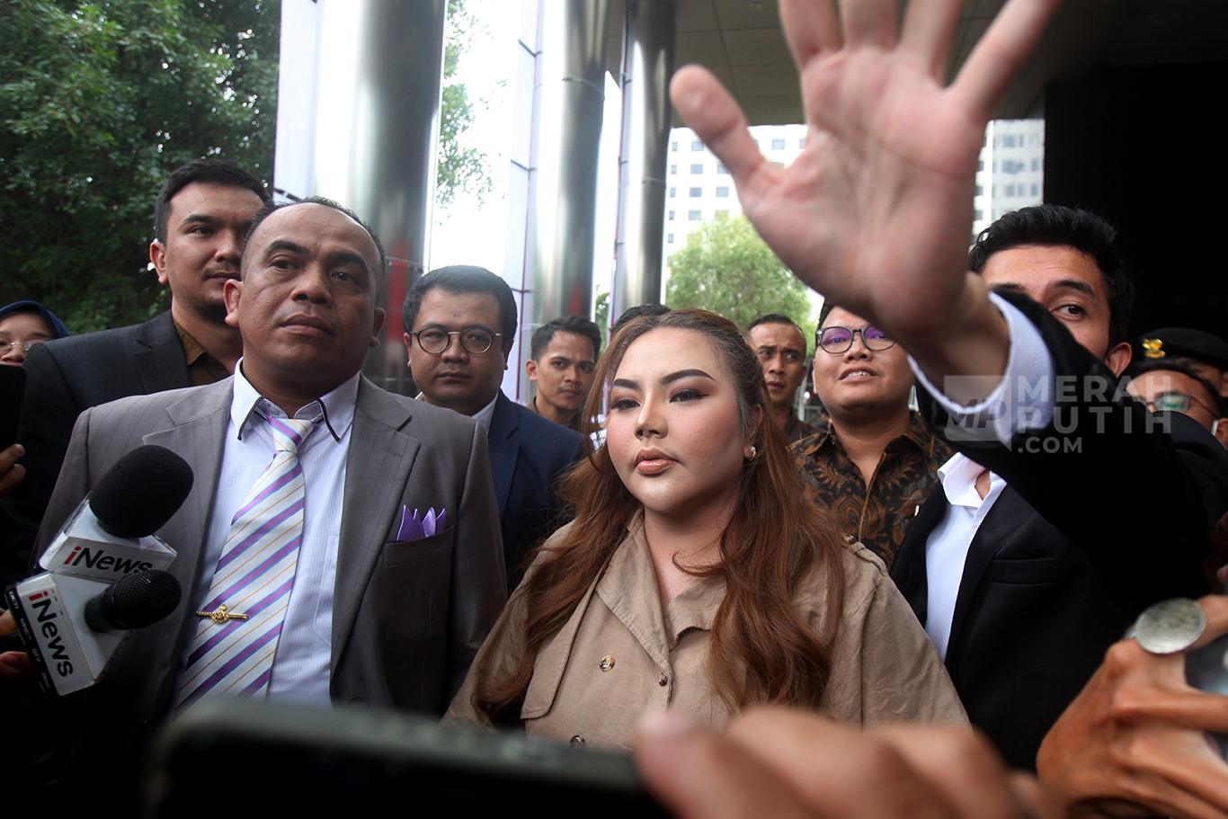 Merahputih.com - Selebgram Lisa Mariana (tengah) saat tiba di Gedung Merah Putih KPK, Kuningan, Jakarta, Jum'at (22/8/2025).