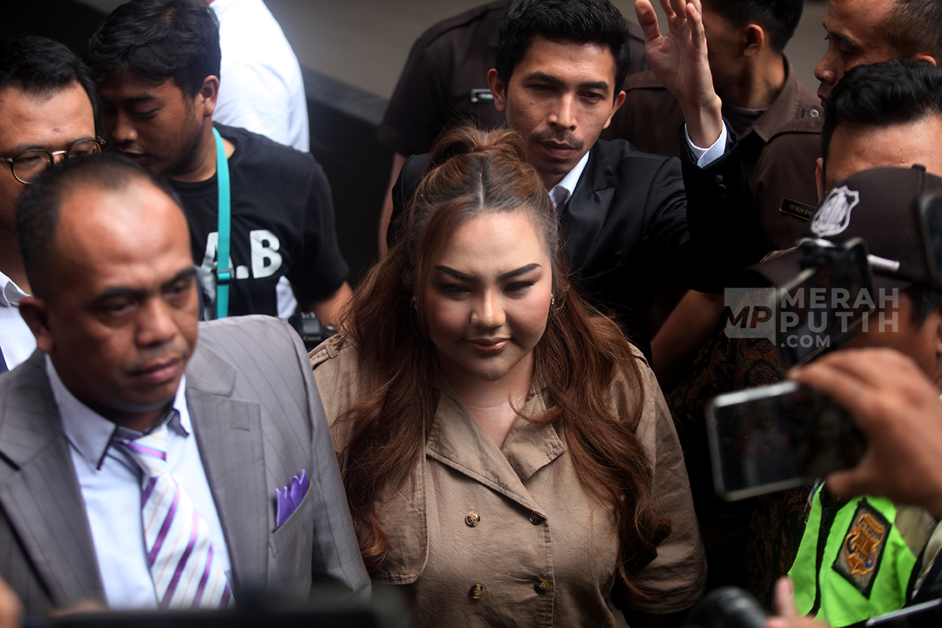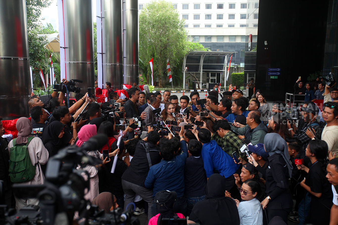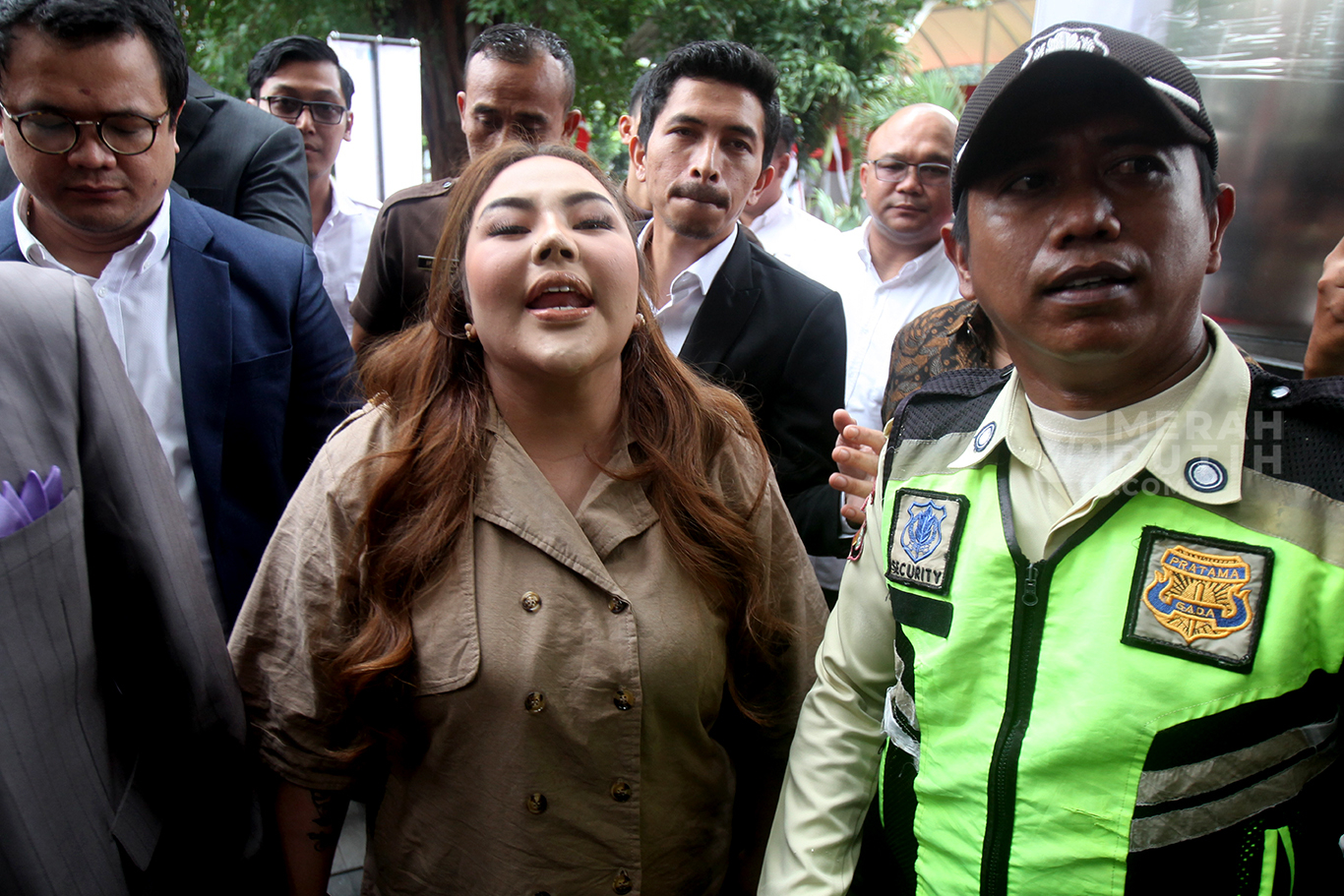 Merahputih.com - Selebgram Lisa Mariana (tengah) saat tiba di Gedung Merah Putih KPK, Kuningan, Jakarta, Jum'at (22/8/2025).
