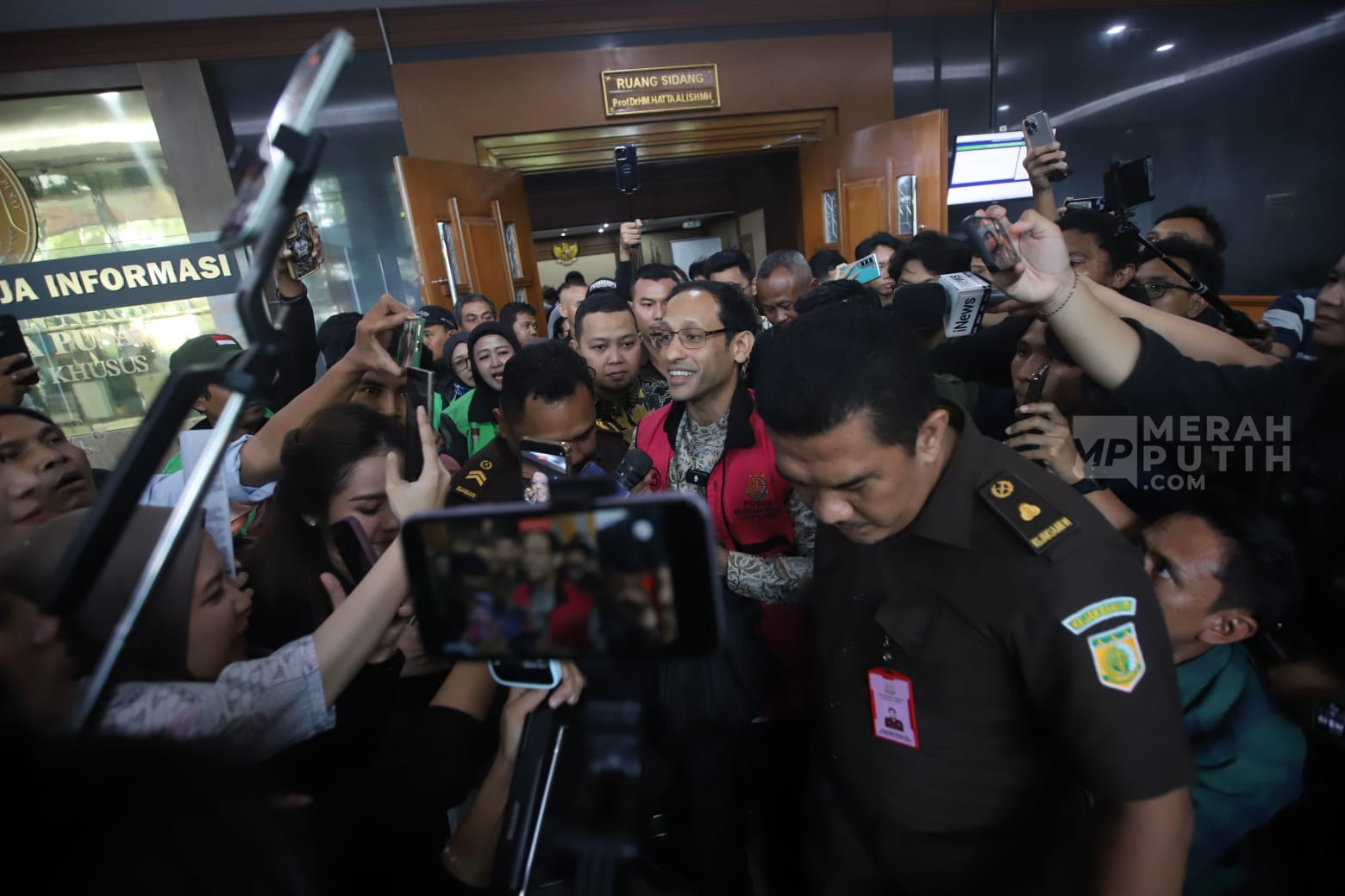 Merahputih.com - Terdakwa kasus dugaan korupsi dalam digitalisasi pendidikan pengadaan laptop Chromebook Nadiem Makarim bersiap meninggalkan ruangan usai mengikuti sidang lanjutan di Pengadilan Tipikor, Jakarta, Senin (19/1/2026). Mantan Mendikbudristek Nadiem Makarim Jalani Sidang Lanjutan di PN Tipikor Jakarta