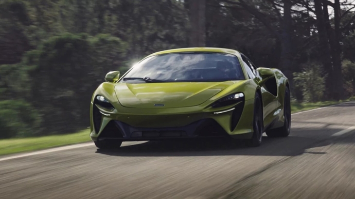 Artura adalah supercar hybrid produksi seri pertama McLaren, menampilkan V6 3.000 cc turbo ganda yang dipasangkan dengan motor listrik tunggal. Output gabungannya menyemburkan 671 tenaga kuda (500 kilowatt), yang disalurkan ke roda belakang melalui transmisi kopling ganda delapan kecepatan.