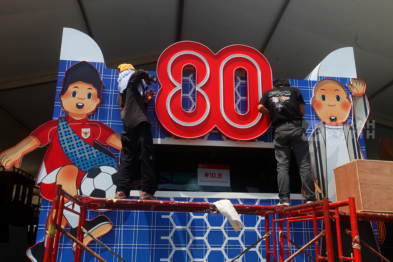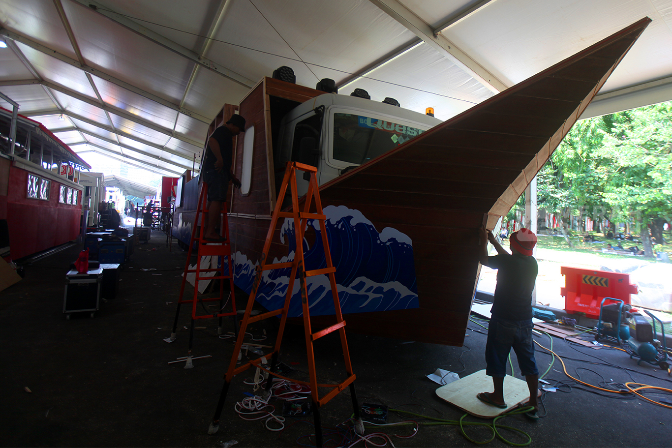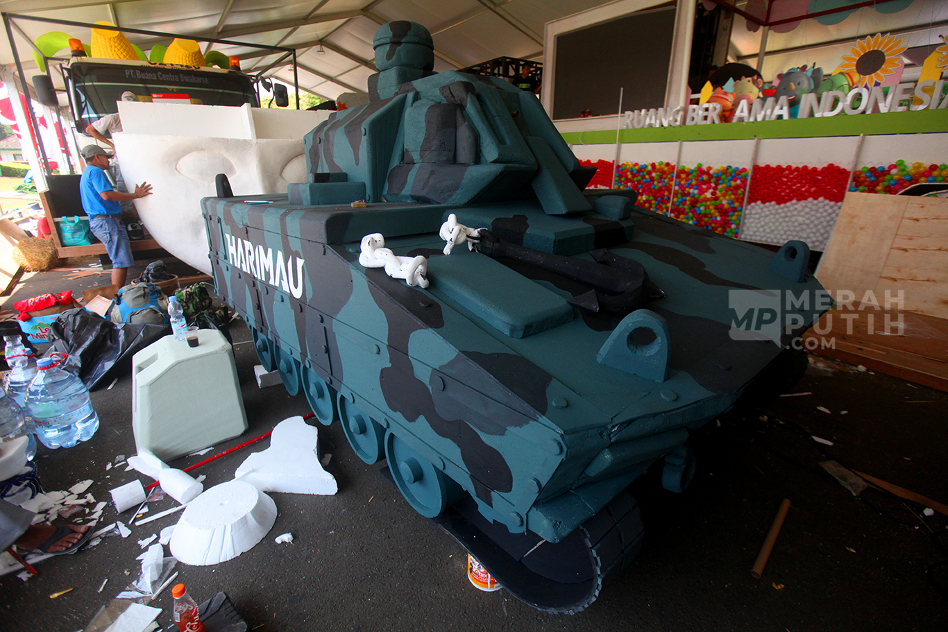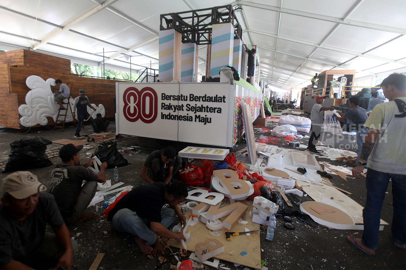 Persiapan karnava dalam rangka memperingati HUT ke-80 Kemerdekaan RI, Minggu 17 Agustus 2025 besok. sejumah Kementerian, Lembaga dan BUMN membuat mobil dekorasi bertema kemerdekaan untuk memriahkan Peringatan HUT ke-80 RI