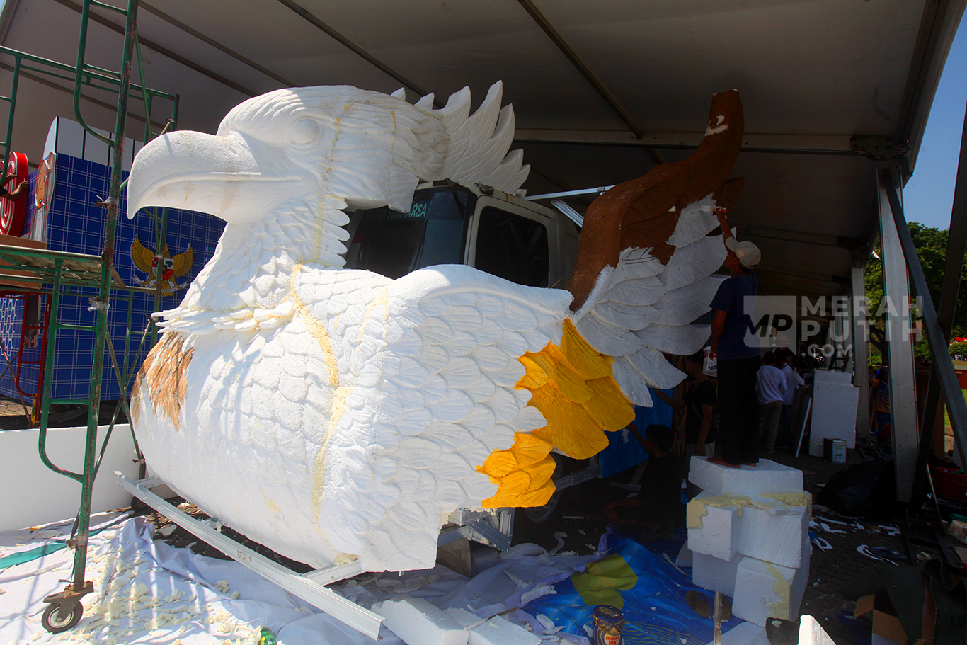 Mengintip Pembuatan Dekorasi Mobil Karnaval Peringatan HUT ke-80 RI di Monas