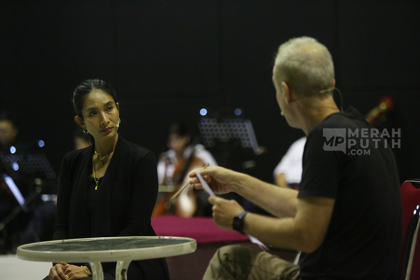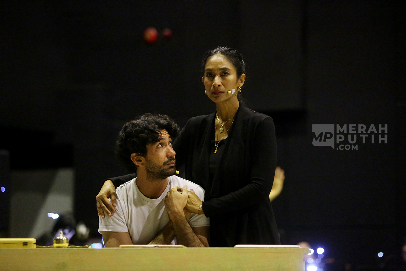 Merahputih.com - Happy Salma memerankan Nyai Ontosoroh beradu akting dengan Reza Rahadian memerankan Minke dalam sesi latihan pementasan teater bertajuk "Bunga Penutup Abad" di Jakarta, Kamis (21/8/2025).