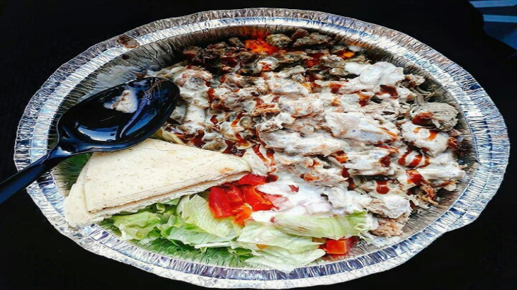 Menu Andalan yang disajikan di tempat ini adalah platter dan sandwich. Platter merupakan nasi warna kuning dengan isian, gyro (daging sapi), sayuran, roti pita, ayam, white sauce dan hot sauce yang disajikan pada piring aluminium. Anda bisa memilih platter dengan daging ayam atau combo ( gyro dan ayam dicampur).
