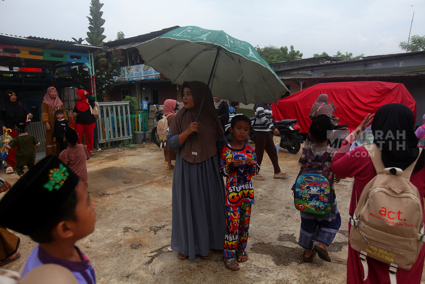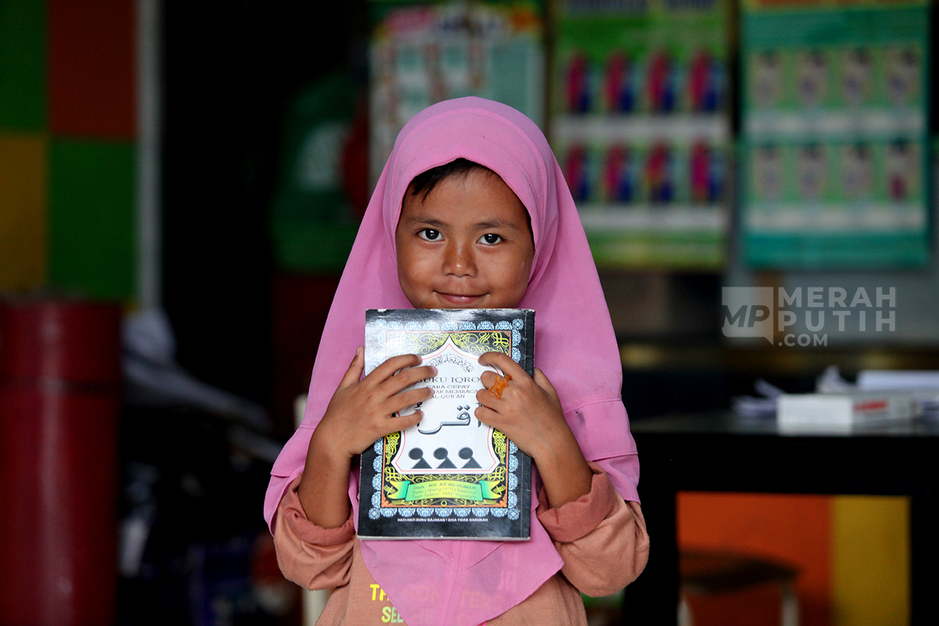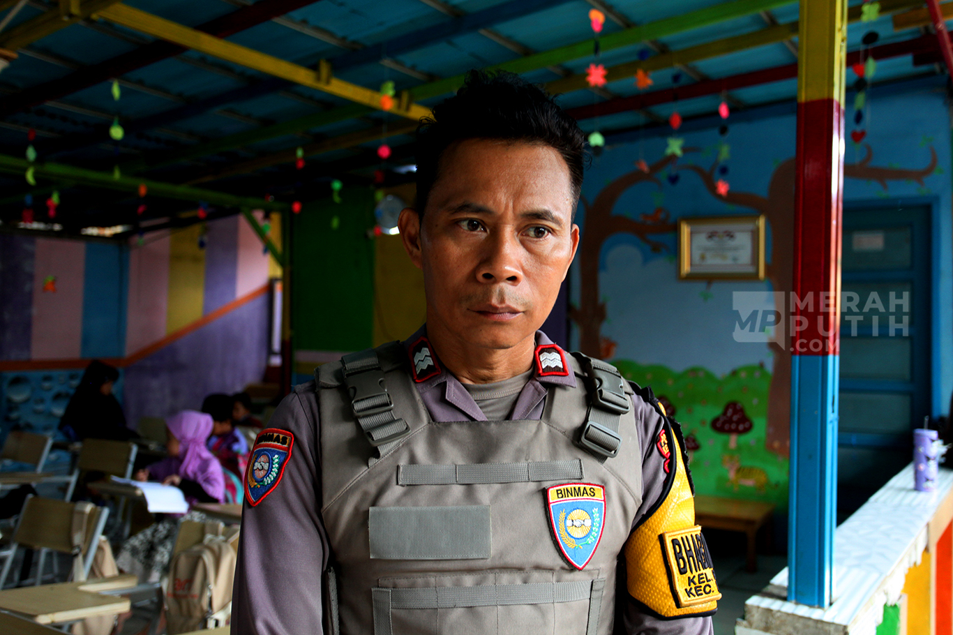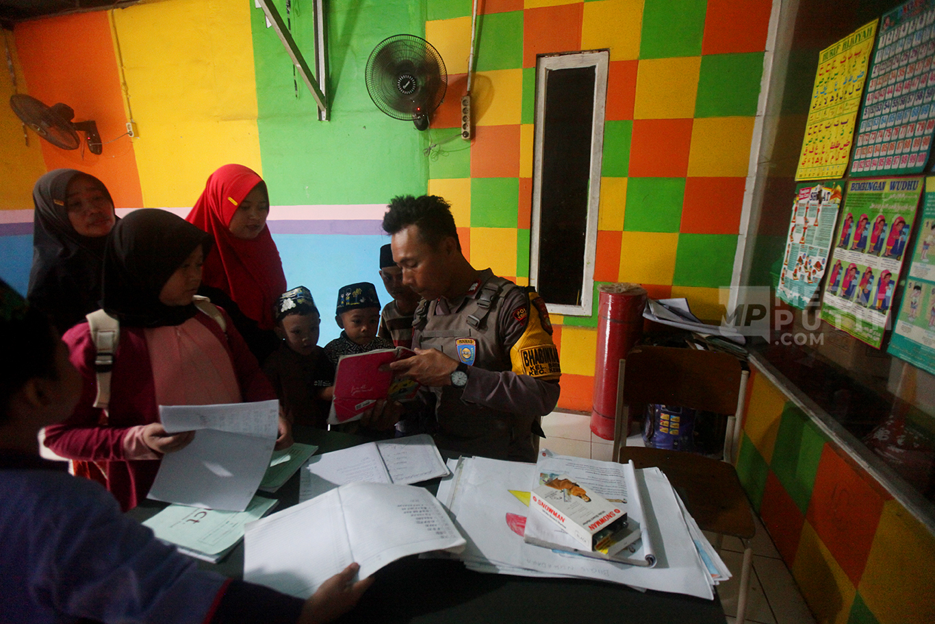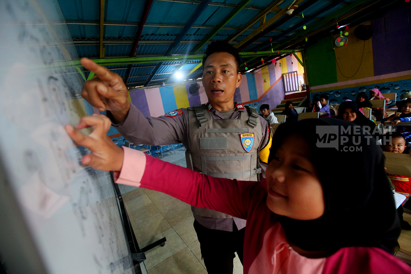 Merahputih.com - Aiptu Agus Riyanto mengajar anak-anak sekolah dasar di Sekolah Anak Percaya di Jalan Sawah Balong, Kawasan Srengseng, Kembangan, Jakarta Barat, Selasa (14/1/2025).