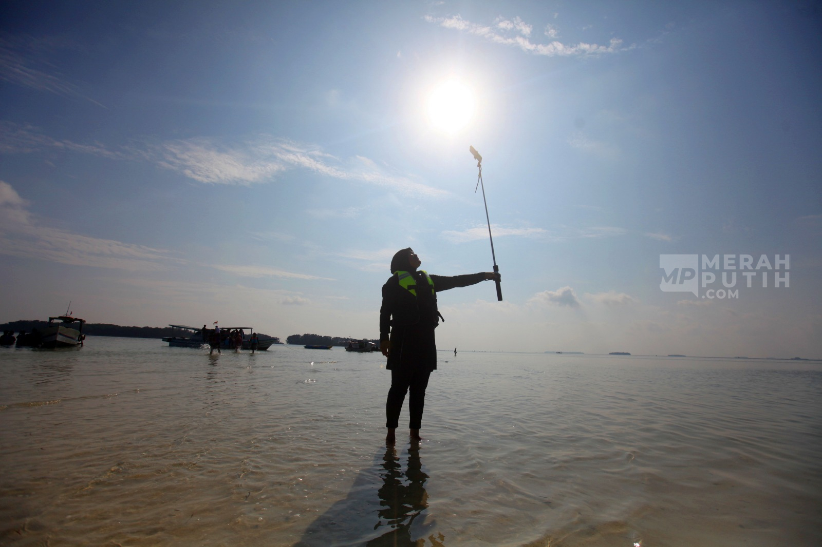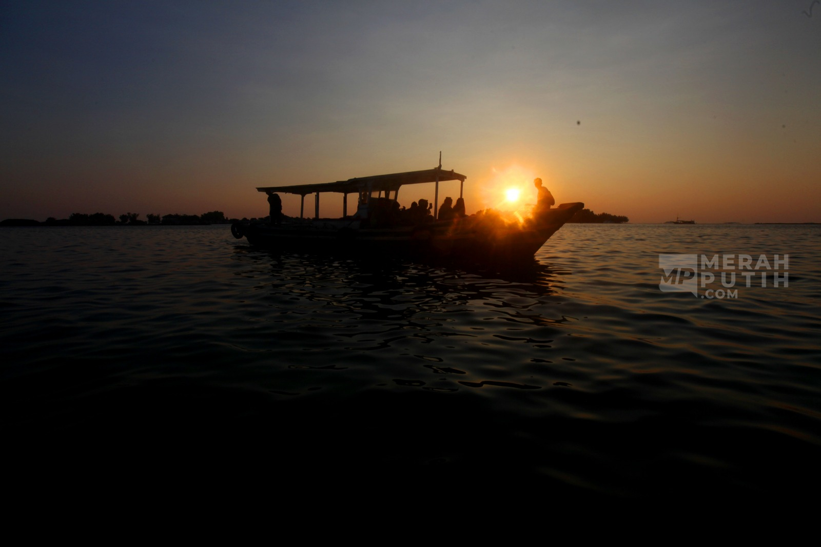 Merahputih.com - Wisatawan berswafoto dengan latar matahari tenggelam (sunset) di Pulau Panggang, Kepulauan Seribu, Jakarta Utara, Minggu (1/6/2025).