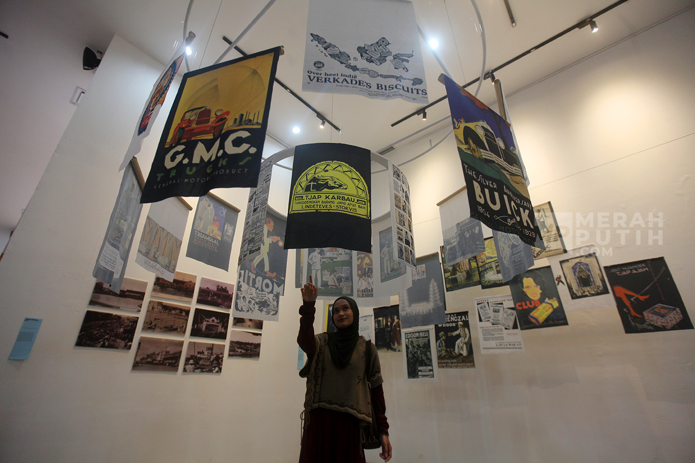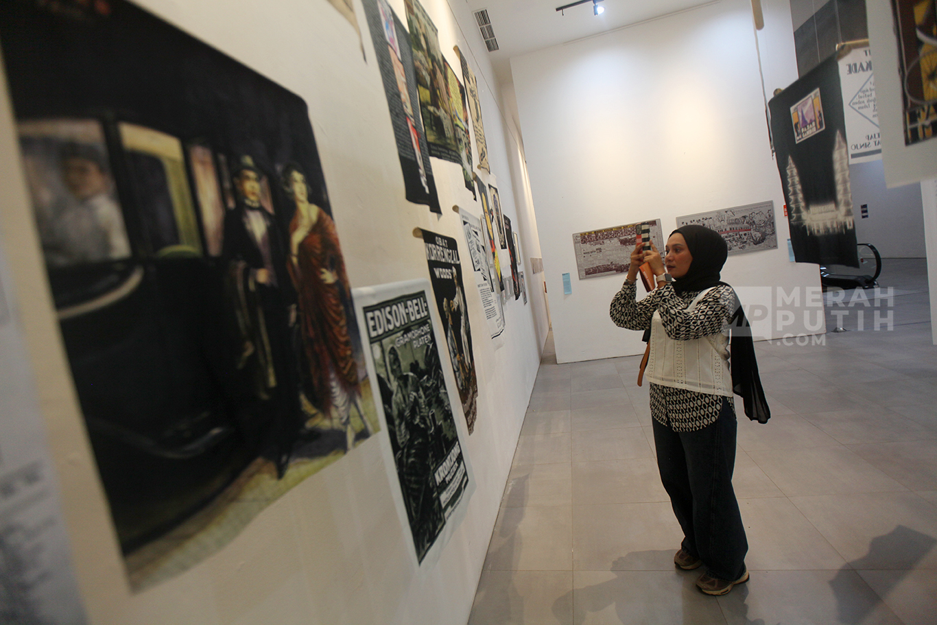 Merahputih.com - Pengunjung mengamati instalasi dan arsip foto lama yang dipamerkan pada Festival Pustakarsa di Galeri Emiria Soenassa Taman Ismail Marzuki, Cikini, Jakarta Pusat, Sabtu (18/10/2025).