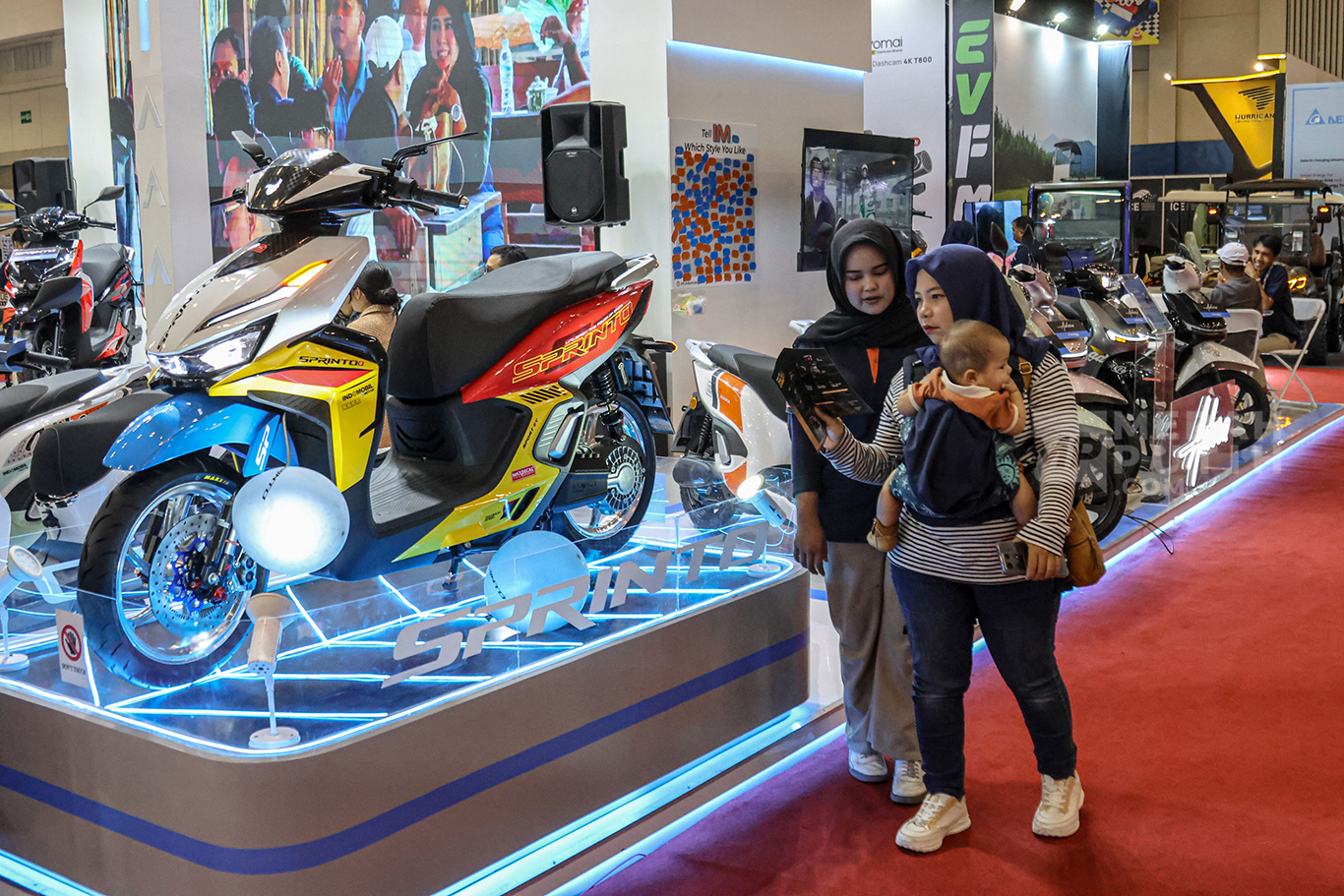 Merahputih.com - Pengunjung melihat motor listik diajang pameran Gaikindo Jakarta Auto Week (GJAW) 2025 di Indonesia Convention Exhibition (ICE) BSD, Kabupaten Tangerang, Banten, Sabtu (29/11/2025).