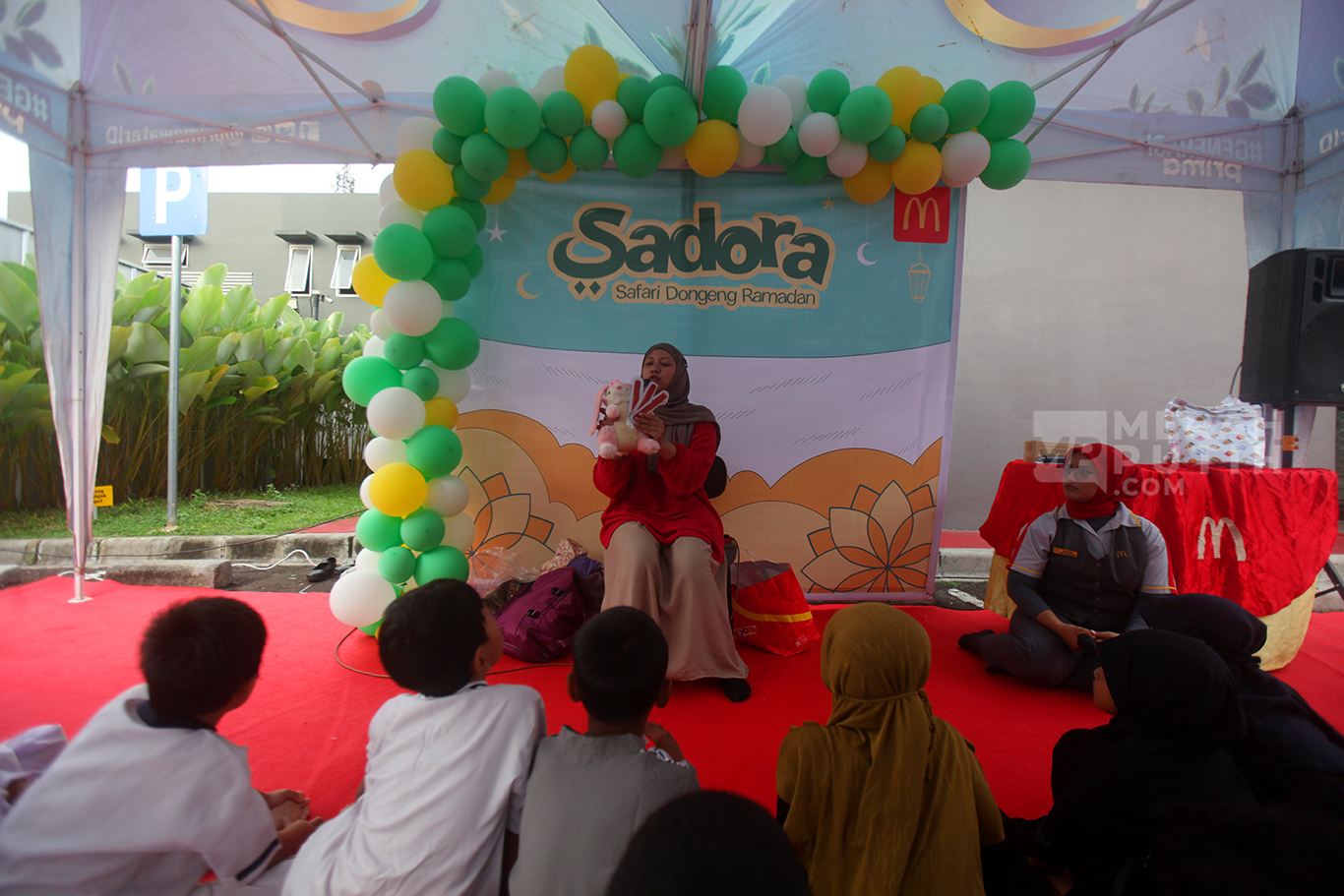 McDonald’s Indonesia kembali menyebarkan kebahagiaan di bulan suci Ramadan melalui program bertema "Kebersamaan dalam Satu Rasa", program yang berisi rangkaian kegiatan kemanusiaan antara lain kampanye berbagi makanan buka puasa untuk lebih dari 300 masjid di Indonesia, berbagi buka puasa bersama dengan ribuan mitra pengemudi ojek online (ojol), serta acara Sadora (Safari Dongeng Ramadan) bersama ribuan anak-anak panti asuhan dan pondok pesantren di Indonesia. (MP/Didik Setiawan).