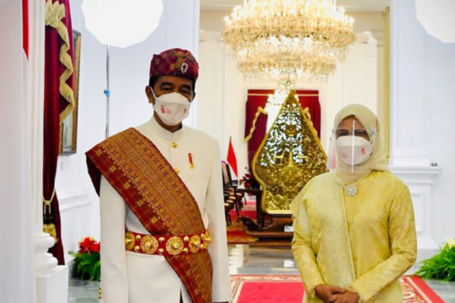 MerahPutih.com - Presiden Joko Widodo (Jokowi) mengenakan pakaian adat Lampung saat menghadiri Upacara Peringatan Detik-Detik Proklamasi Kemerdekaan RI di Istana Negara, Jakarta Pusat, pada Selasa, 17 Agustus 2021.