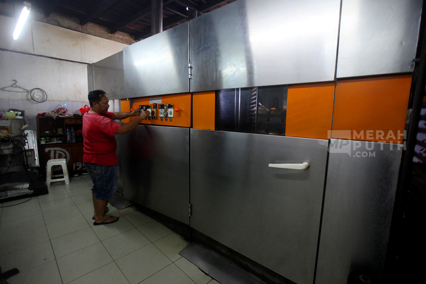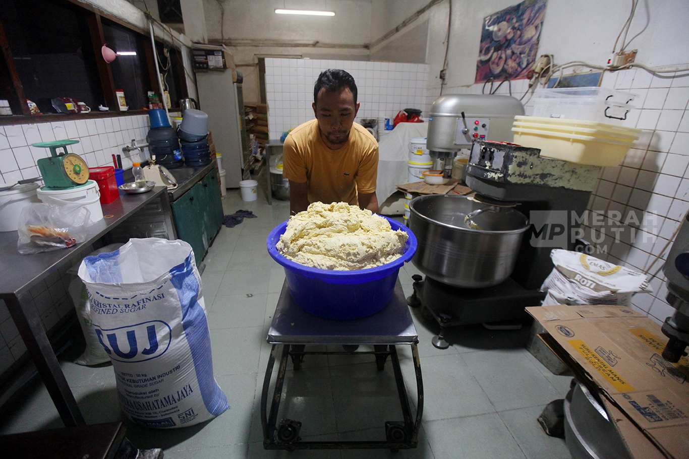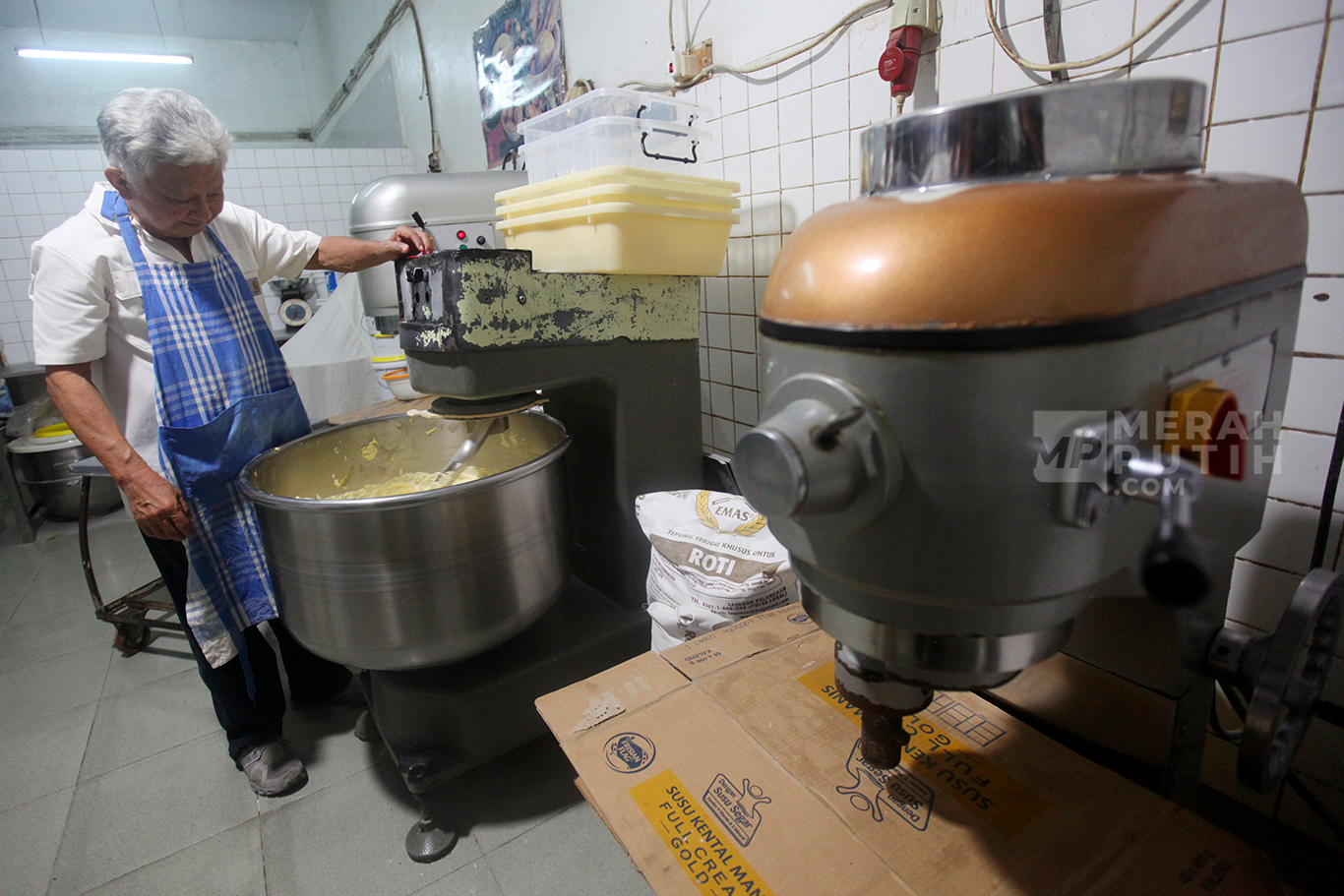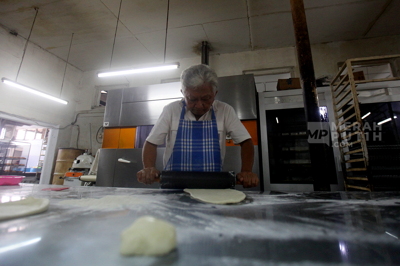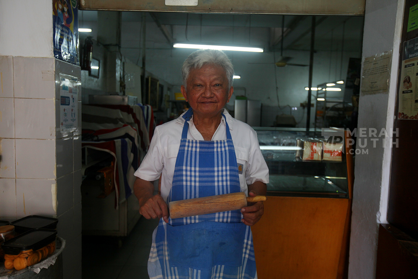 Merahputih.com - Ridwan Wiryadinata pemiik Toko Roti Gelora menunjukkan roti tawar manis di Toko Roti Gelora di Gang Obat RT 10/RW 5, Bali Mester, Jatinegara, Jakarta Timur, Kamis (4/11/2024).