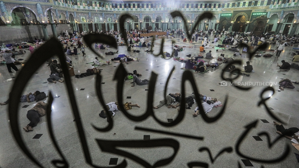 Umat muslim melaksanakan I'tikaf pada malam ke-29 bulan Ramadan 1440 H di Masjid Raya Al-Azhom, Kota Tangerang, Senin, (3/6/2019). Pada 10 malam terakhir Ramadan khususnya pada malam ganjil atau malam Lailatul Qodar, Masjid Raya Al-Azhom dihadiri ribuan umat muslim yang ingin melaksanakan I'tikaf. Merahputih.com / Rizki Fitrianto