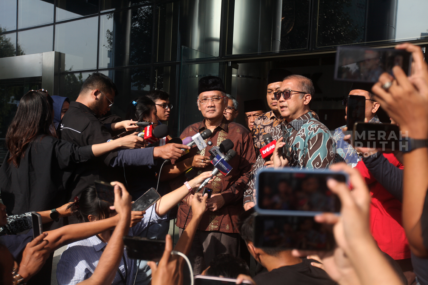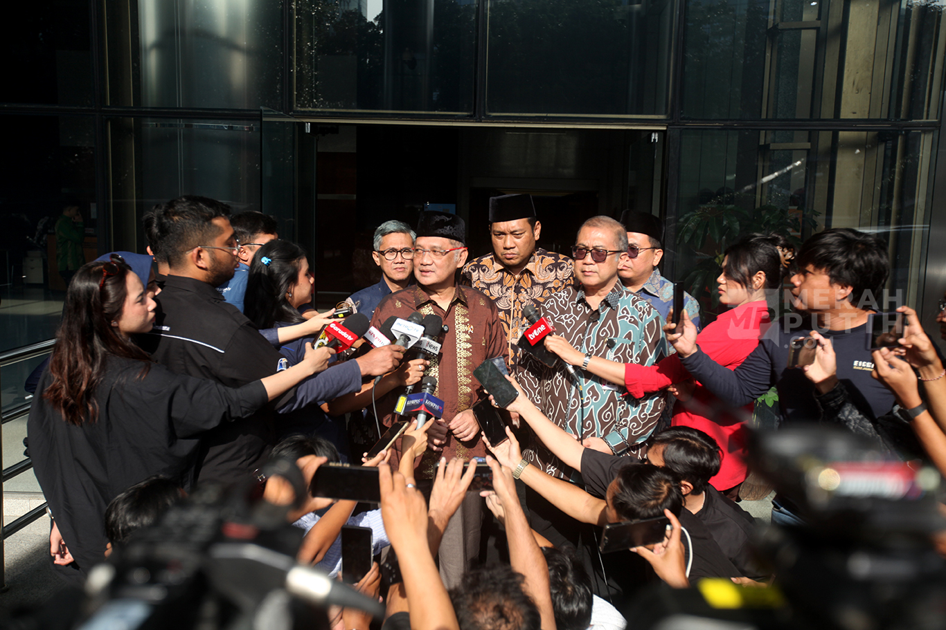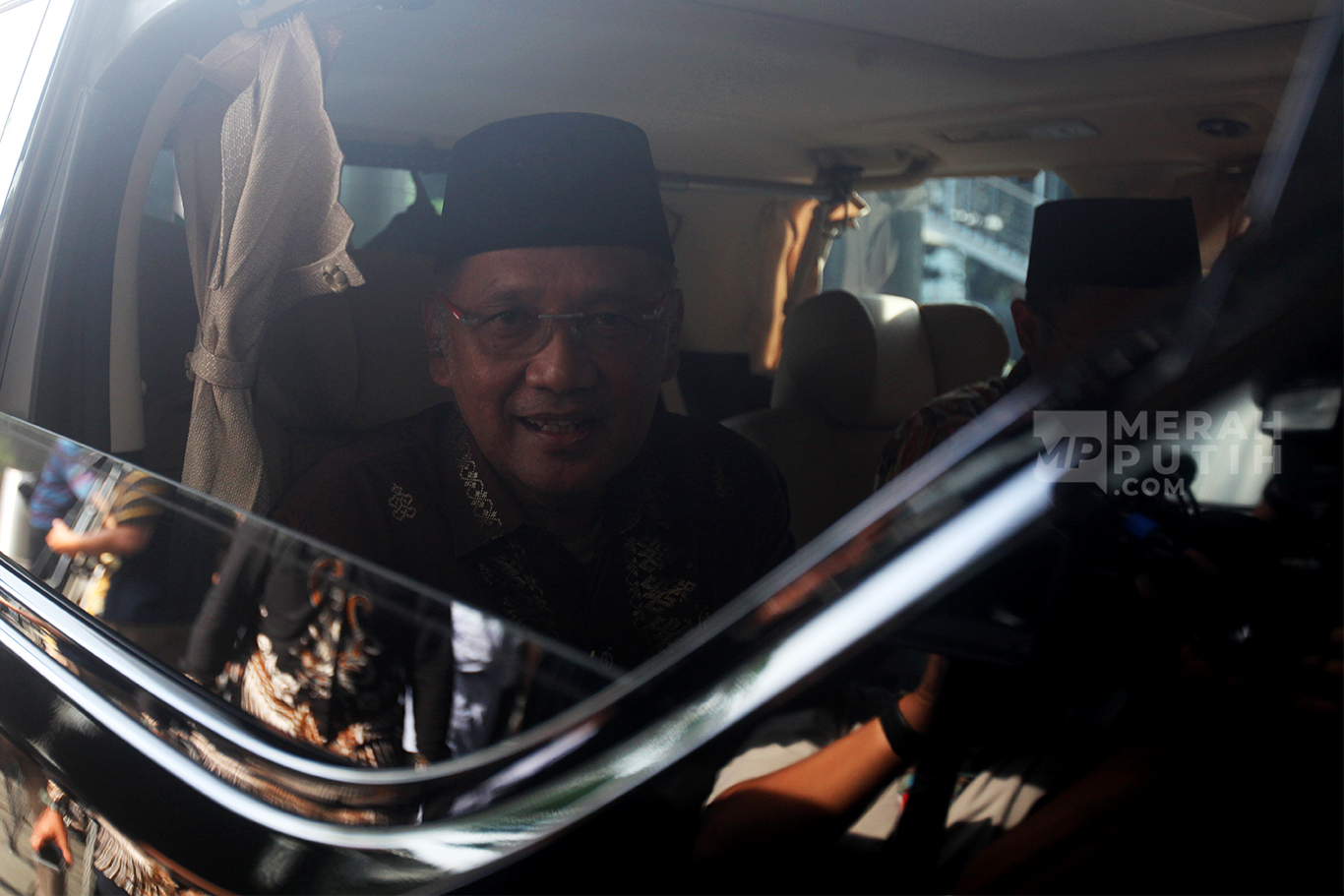 Merahputih.com - Menteri Haji dan Umrah Mochamad Irfan Yusuf atau Gus Irfan memberi salam usai pertemuan dengan Komisi Pemberantasan Korupsi (KPK) di Gedung Merah Putih KPK, Kuningan, Jakarta, Jum'at (3/10/2025).
