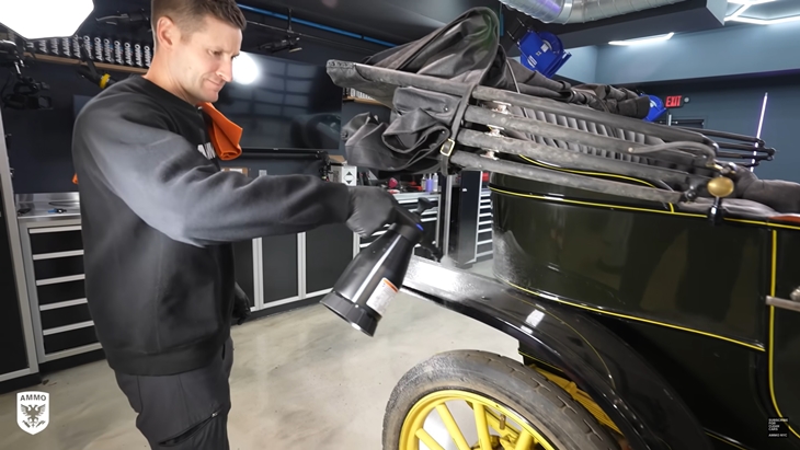 Maka dari itu, Ammo NYC tidak menggunakan mesin cuci listrik untuk membersihkan bagian dari mobil-mobil tersebut dengan air. Sebagai gantinya, mereka menggunakan bahan kimia yang digunakan dengan kuas khusus agar tidak menggores cat bodi mobil itu.