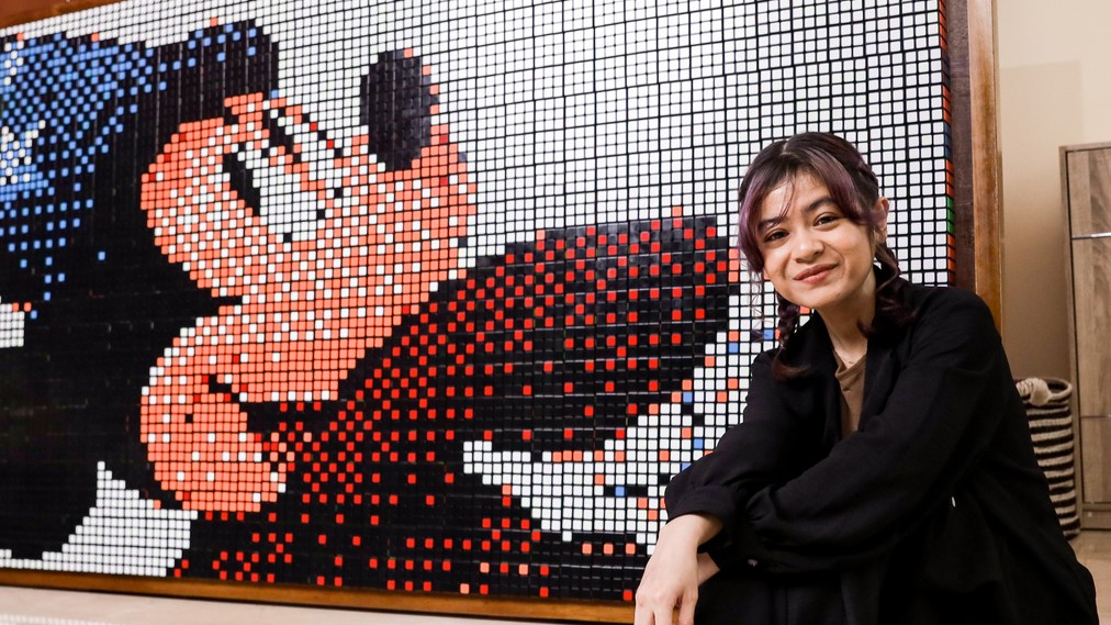 Mengenai karyanya, Chintya berkata, "Ketika kita berbicara tentang Disney, Mickey Mouse biasanya adalah karakter pertama yang muncul dalam pikiran. Karya seni mosaik yang saya sumbangkan untuk Create 100 ini dibuat dari tepat 1.008 Rubik's Cube."