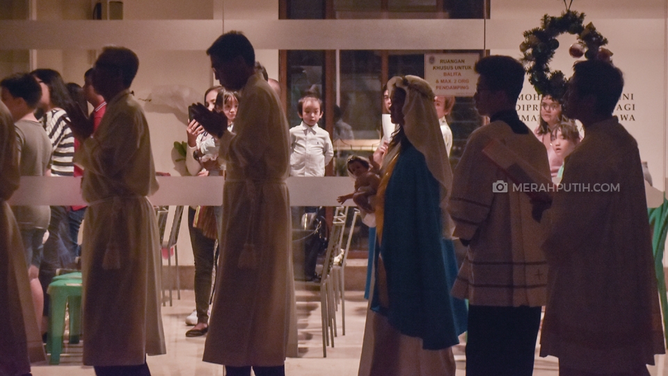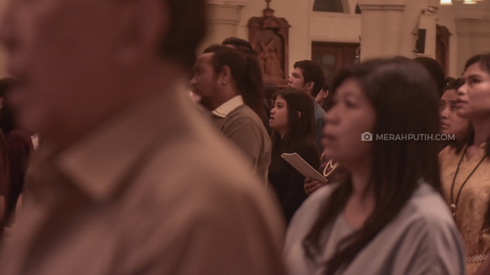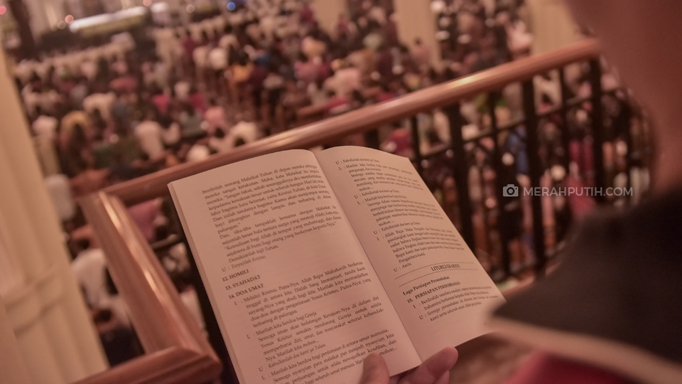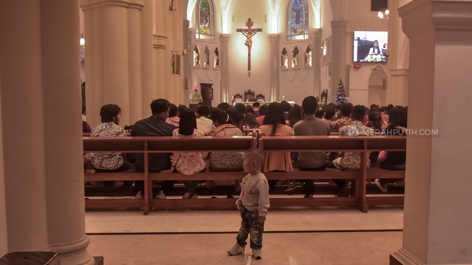 Umat Kristiani mengikuti ibadah misa malam Natal di Gereja Katolik Santo Laurensius di Serpong, Tangerang Selatan, Banten, Selasa, (24/12/2019). Ibadah Misa Malam Natal di Gereja Katolik Santo Laurensius, telah dimulai sejak pukul 17.00 WIB. Jemaat tampak khidmat dalam mengikuti prosesi ibadah tersebut. Untuk tema natal pada tahun ini adalah Hiduplah Sebagai Sahabat Bagi Semua Orang. Merahputih.com / Rizki Fitrianto