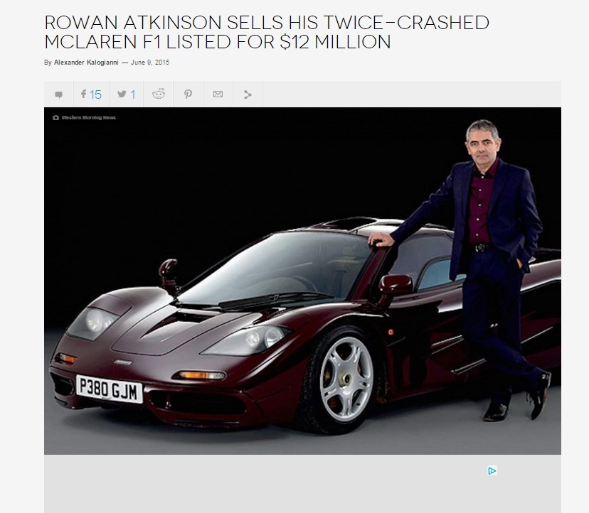 Seperti yang dilansir CNBC, Rowan menjual mobil kesayangannya itu karena mobil itu pernah kecelakaan parah. Ia pun memutuskan untuk menjual F1-nya di dealer Taylor and Crawley.