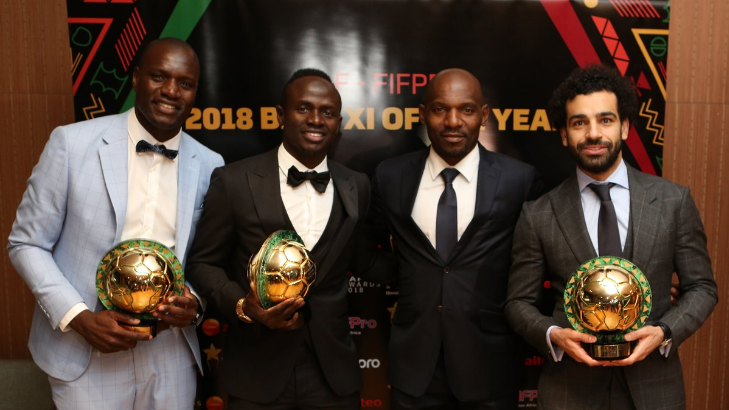 Tim Terbaik Afrika 2018: Denis Onyango (Mamelodi Sundowns/Uganda), Serge Aurier (Tottenham/Pantai Gading), Medhi Benatia (Juventus/Maroko), Eric Bailly (Manchester United/Pantai Gading), Kalidou Koulibaly (Napoli/Senegal); Naby Keita (Liverpool/Guinea), Thomas Partey (Atletico Madrid/Ghana), Riyad Mahrez (Manchester City/Aljazair); Mohamed Salah (Liverpool/Mesir), Pierre-Emerick Aubameyang (Arsenal/Gabon), Sadio Mane (Liverpool/Senegal)