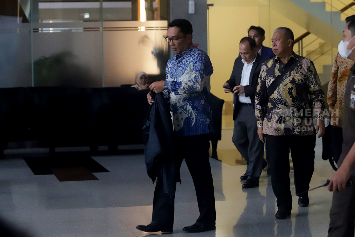 Ridwan Kamil keluar dari ruang pemeriksaan sekitar pukul 16.30 WIB, setelah menjalani pemeriksaan hampir enam jam, sejak kedatangannya di KPK pada pukul 10.42 WIB.