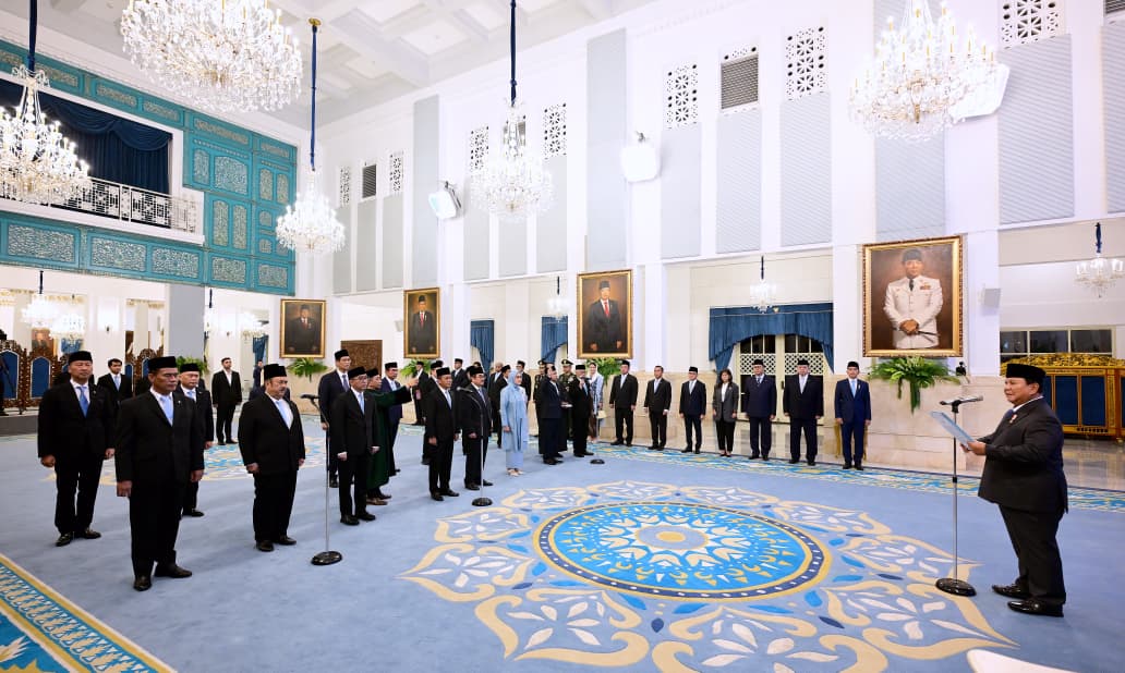 Presiden Prabowo Subianto melantik 16 anggota Dewan Energi Nasional dari unsur pemerintahan dan pemangku kepentingan lainnya diantaranya Menteri ESDM sekaligus menjadi Ketua Harian DEN Bahlil Lahadalia, anggota DEN Menteri Keuangan Purbaya Yudhi Sadewa, Menteri Pertanian Andi Amran Sulaiman, Menteri LH Hanif Faisol Nurofiq, Menteri Perhubungan Dudy Purwagandhi dan Menteri Perindustrian Agus Gumiwang Kartasasmita. (Foto: Biro Setpres BPMI).