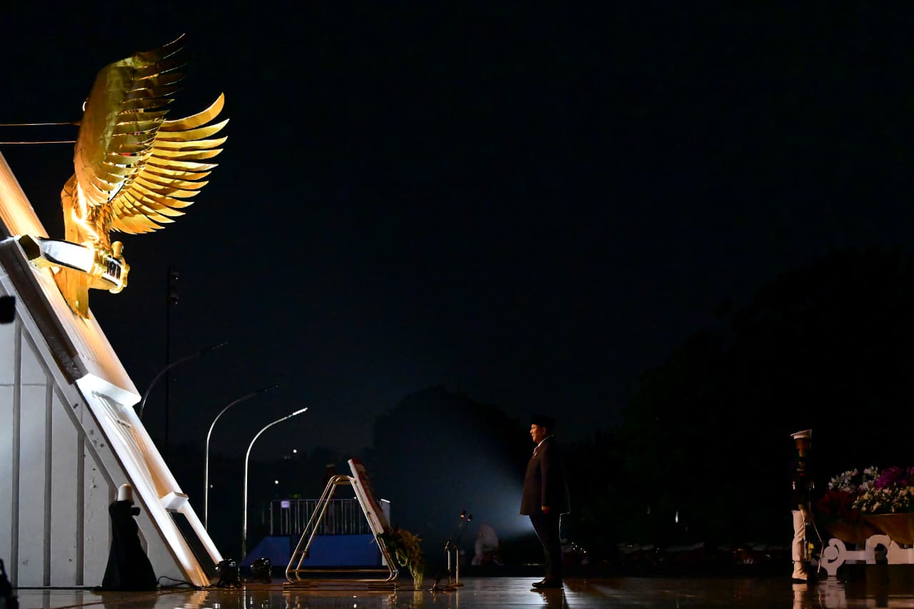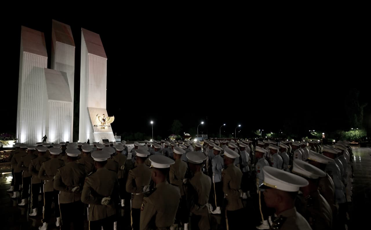 Rangkaian acara diawali dengan peletakan karangan bunga oleh Presiden Prabowo di tugu makam pahlawan, dilanjutkan penghormatan kepada arwah para pahlawan, serta renungan suci mengenang jasa pahlawan nasional. (Foto: Muchlis Jr - Biro Pers Sekretariat Presiden).