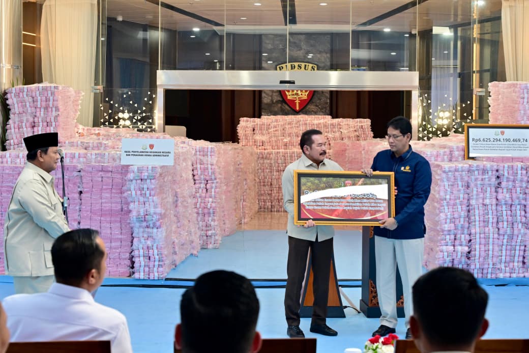Momen Presiden Prabowo Subianto Saksikan Penyerahan Denda Kehutanan dan Korupsi