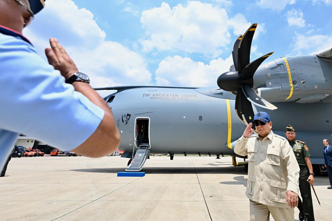 Presiden Prabowo Subianto menerima unit pertama pesawat angkut berat A400M untuk TNI AU dan memberi sinyal negosiasi 4 unit tambahan.