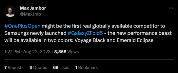 OnePlus Open akan Tersedia dengan Pilihan Warna Terbatas