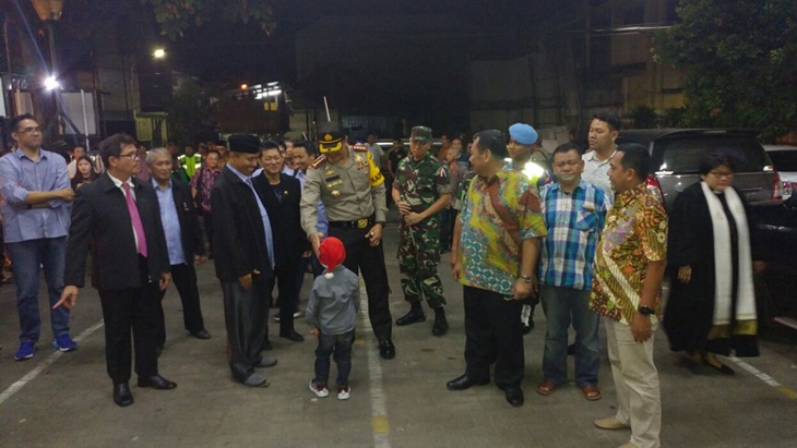 MerahPutih.com - Untuk memastikan kegiatan Misa Natal 2017 yang aman, Kapolres Metro Jakarta Barat Kombes Pol Hengki Haryadi bersama Wali Kota Jakbar H Anas, Dandim 0503/JB Letkol Inf Andry Hengky Masengi, dan Danrem 052 Tangerang sambangi Gereja Kristen Indonesia (GKI), Jelambar, Jakarta Barat.