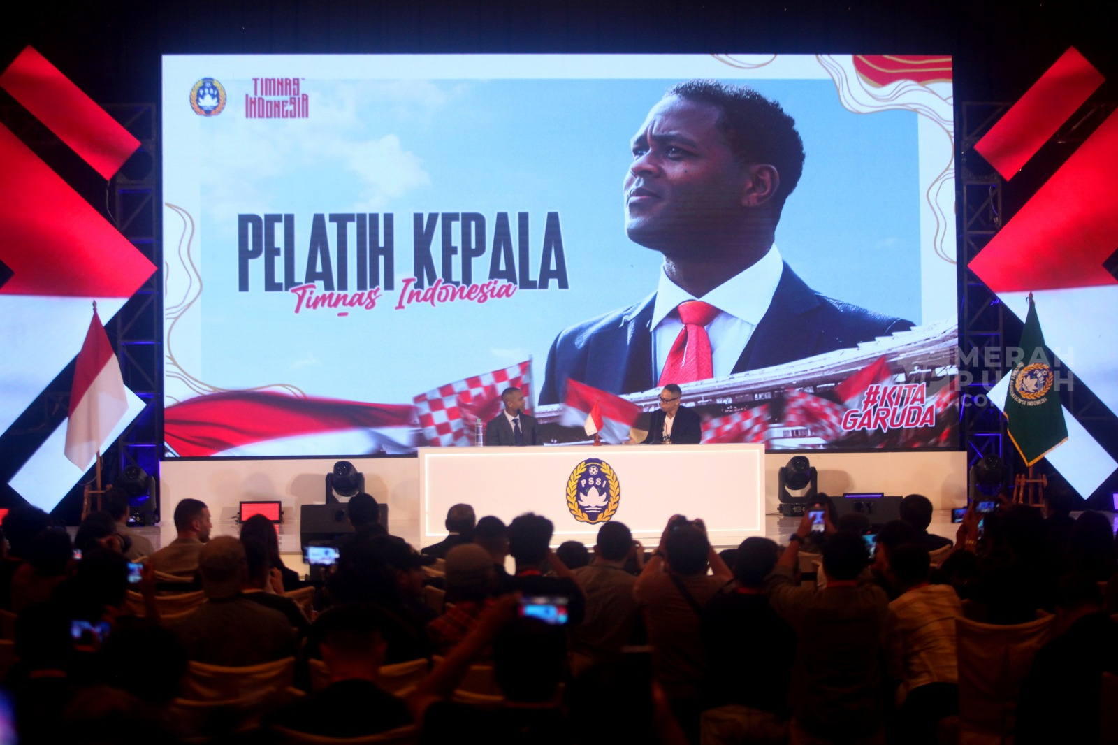Pelatih anyar Timnas Indonesia, Patrick Kluivert, percaya diri membawa Skuad Garuda menuju Piala Dunia 2026. Pelatih Timnas Indonesia, Patrik Kluivert akan bekerja sama dengan Asisten Pelatih Timnas, Alex Poster dan Asisten Pelatih Timnas Denny Landzaat. (MP/Didik Setiawan).