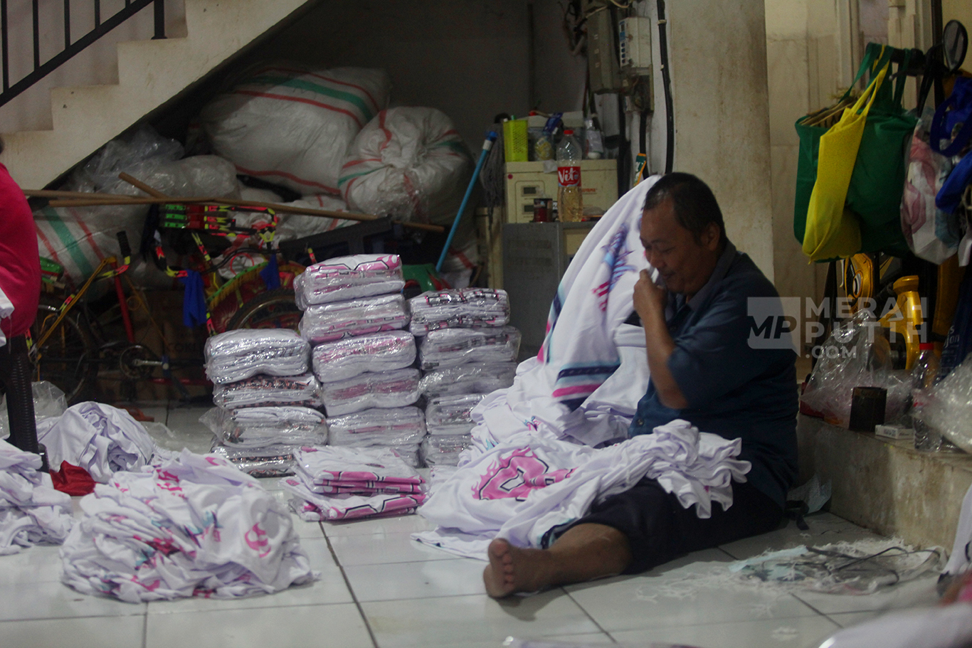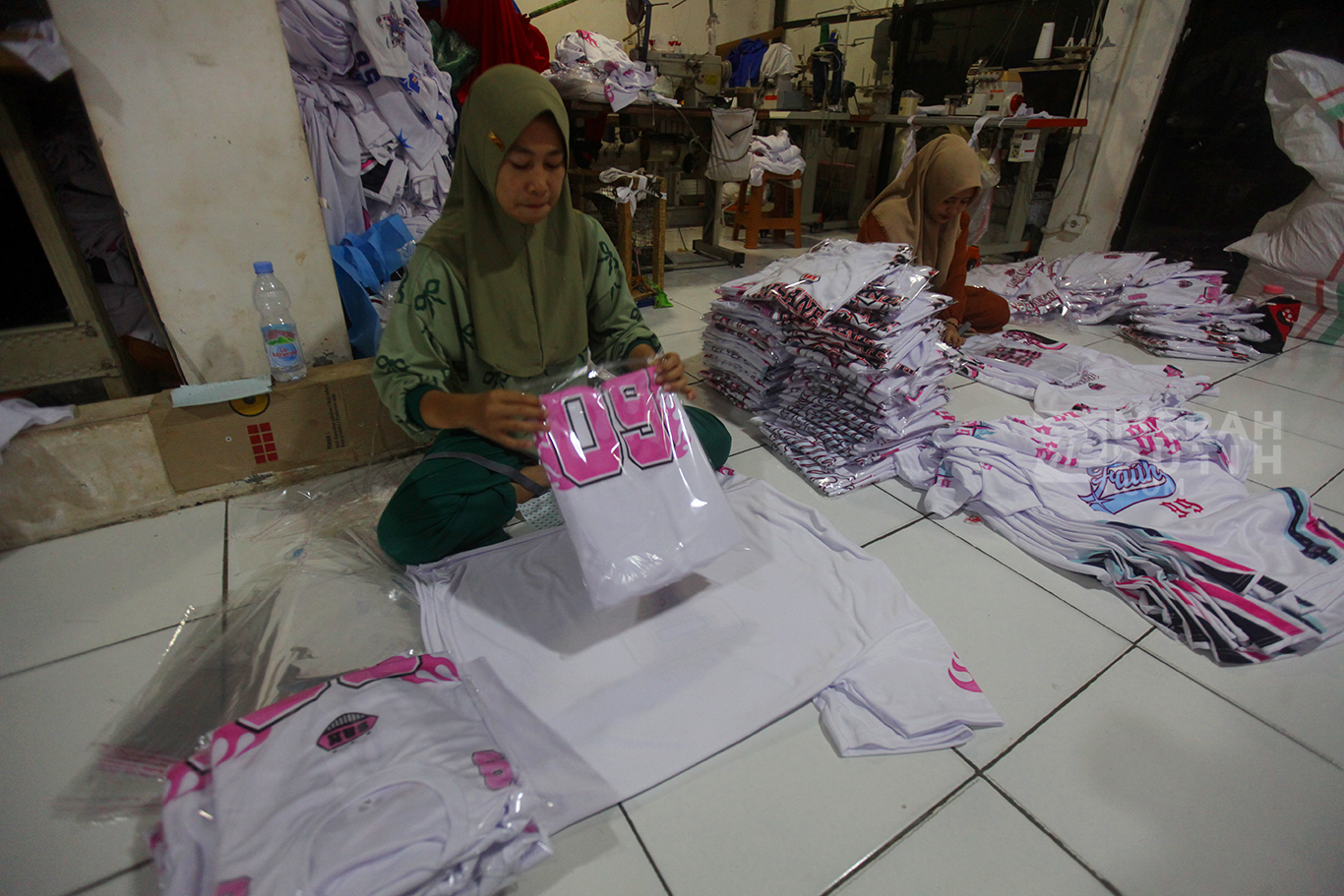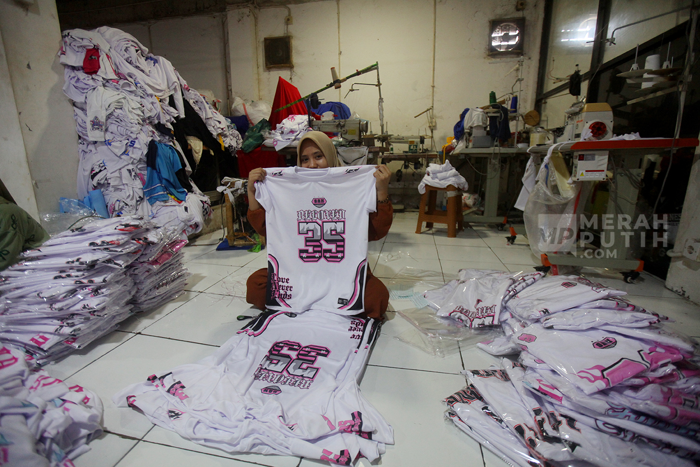 Merahputih.com - Pekerja melipat kaos saat proses produksi UMKM Konveksi Rumahan di Kawasan Jagakarsa, Jakarta Selatan, Selasa (7/10/2025).