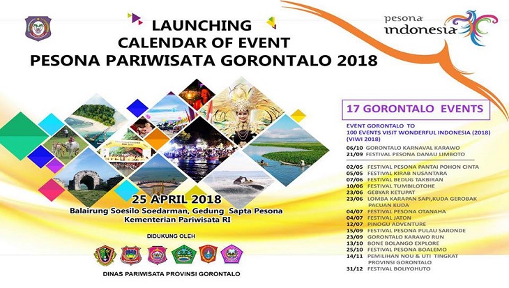 MerahPutih.com - Pemerintah Provinsi Gorontalo menggelar 17 event pariwisata sepanjang 2018 bertajuk Calendar of Event Visit Wonderful Indonesia Provinsi Gorontalo. Event dihelat demi meningkatkan kunjungan wisatawan.