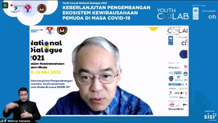 Dalam acara bertajuk “Keberlanjutan Ekosistem Pengusaha Muda selama COVID-19”, hadirin melihat peluang untuk mendukung Indonesia menuju pemulihan ekonomi hijau pasca pandemi. Dialog Nasional ini adalah bagian dari Youth Co:Lab, sebuah inisiatif regional untuk mendorong pertumbuhan wirausaha sosial di Asia-Pasifik, dipimpin oleh UNDP dan Citi Foundation.